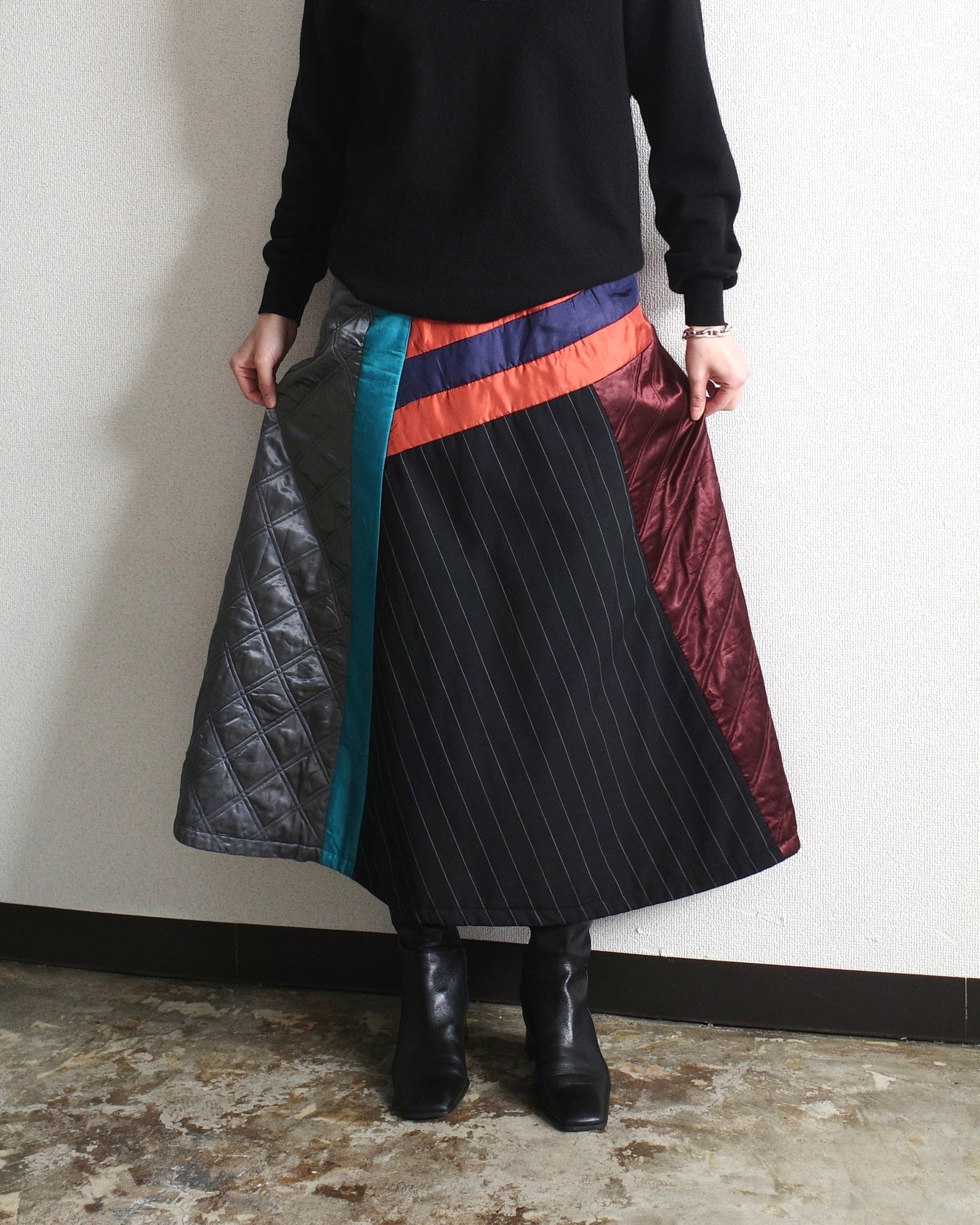 Euro vintage, Leather×Wool tweed switching skirt (made in Italy)