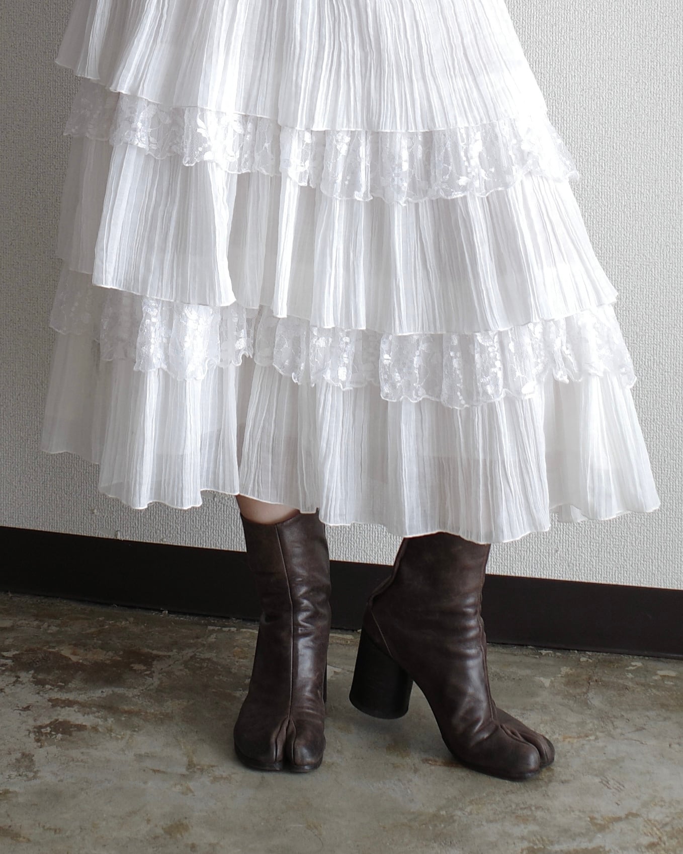 Euro vintage, Lace×Pleats tiered skirt (made in France)