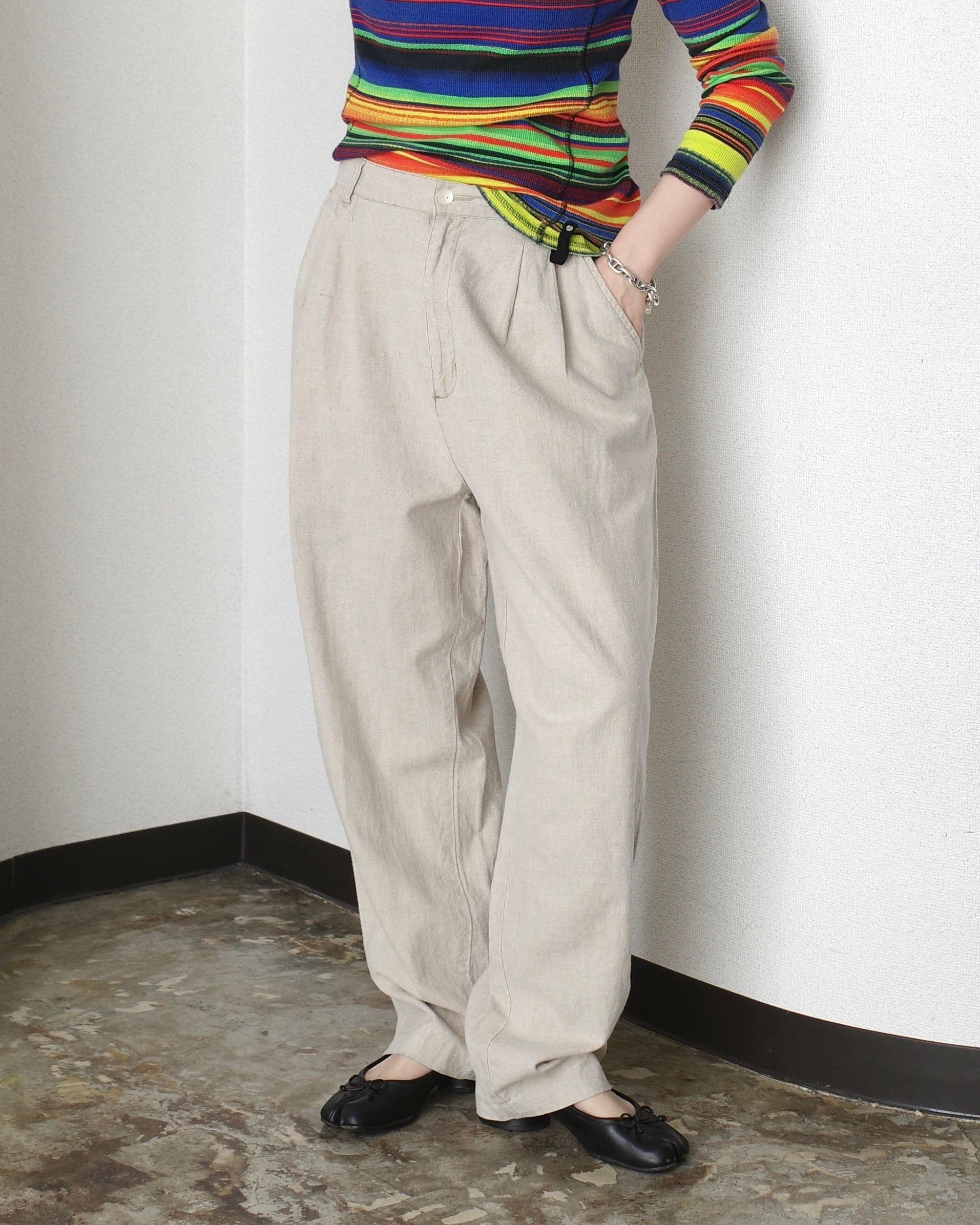 1990's "OLD NAVY", 2tuck linen×cotton slacks