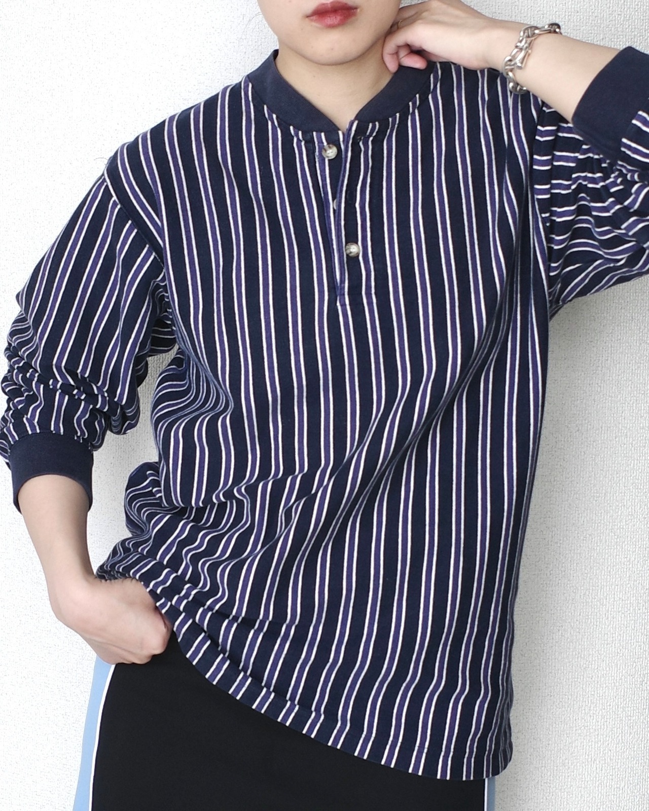 1990's "Eddie Bauer", Stripe henry neck L/S tee