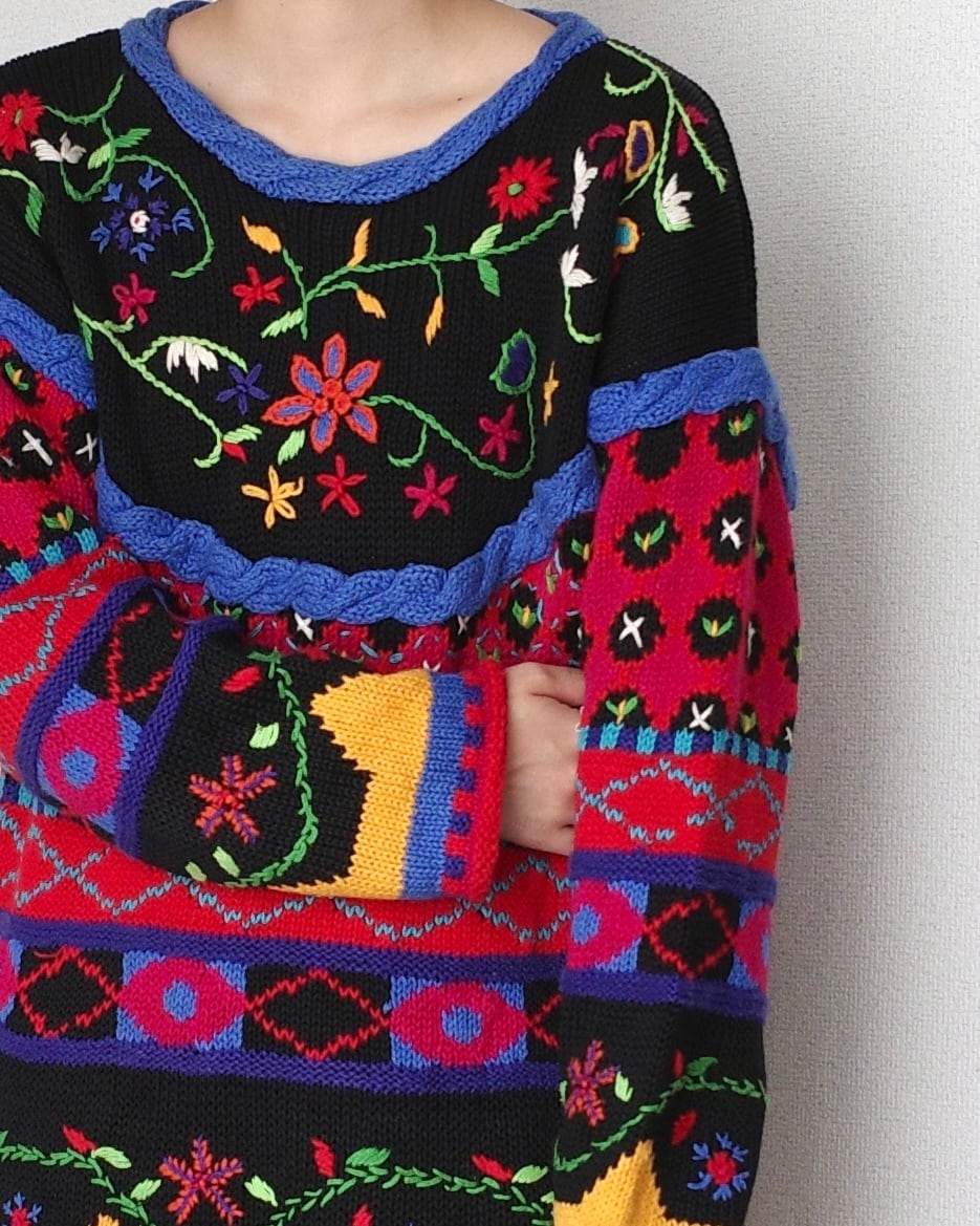 1980〜90's, Flower embroidery hand knit