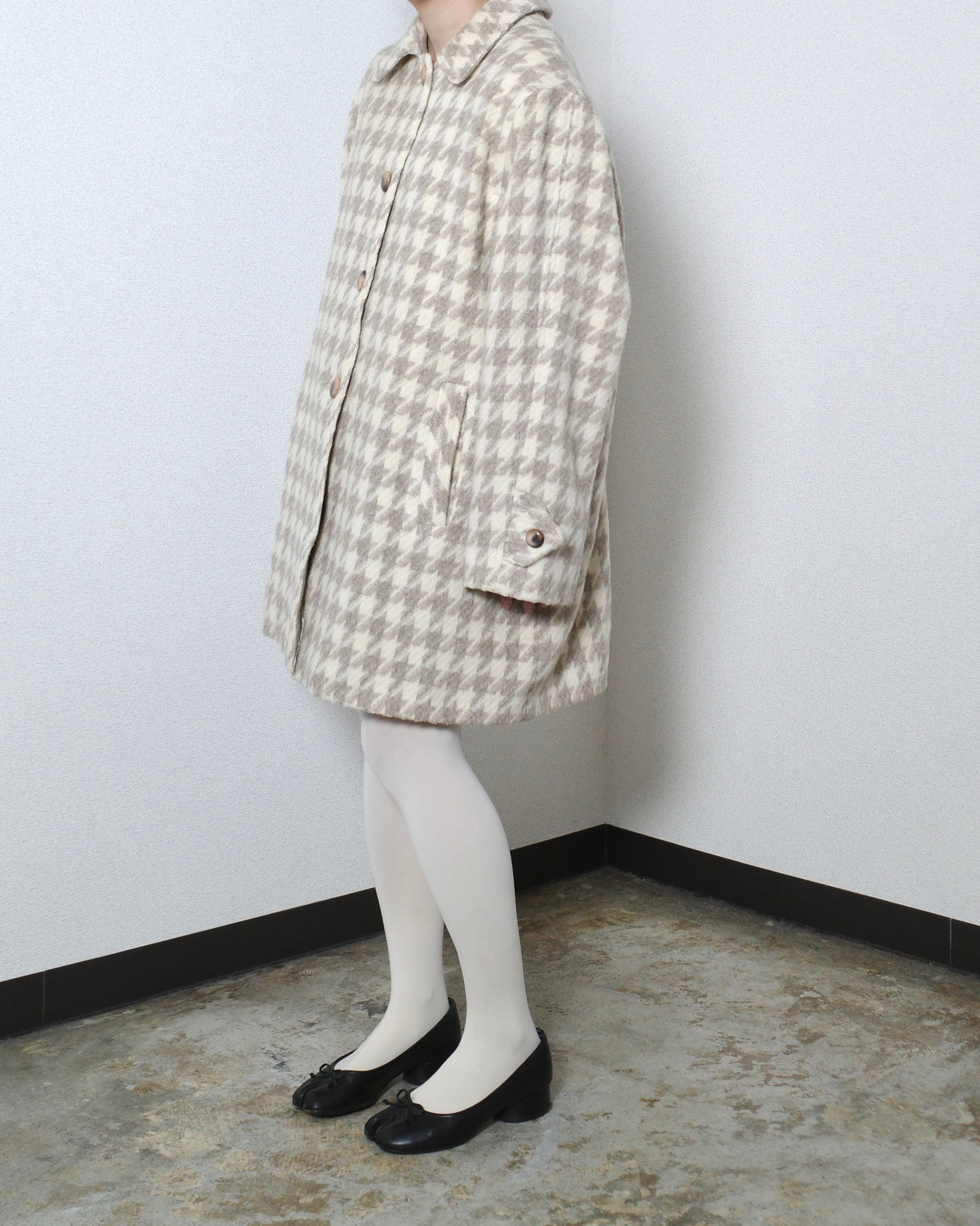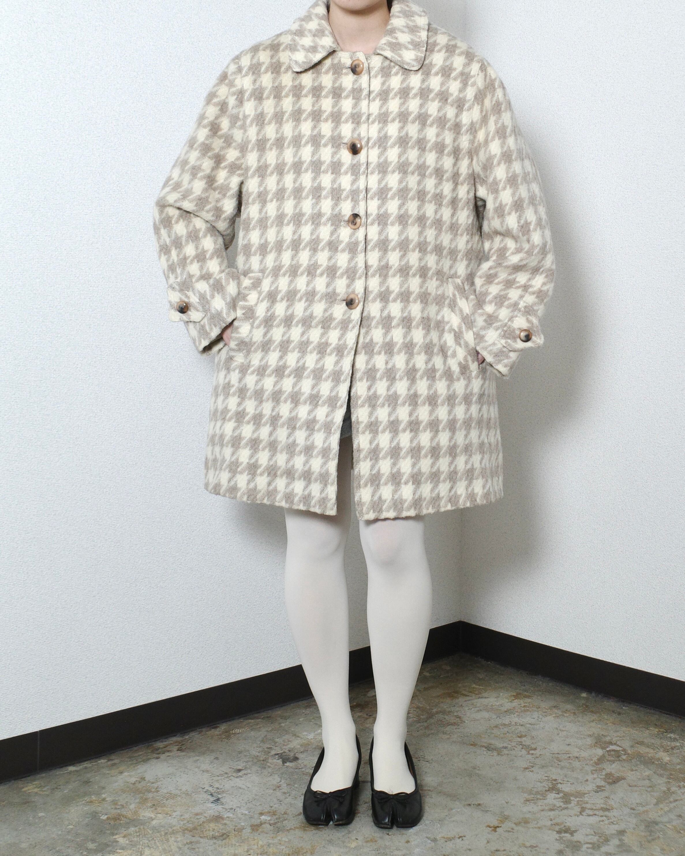 Euro, French vintage, Houndstooth pattern lama wool coat (made in France)