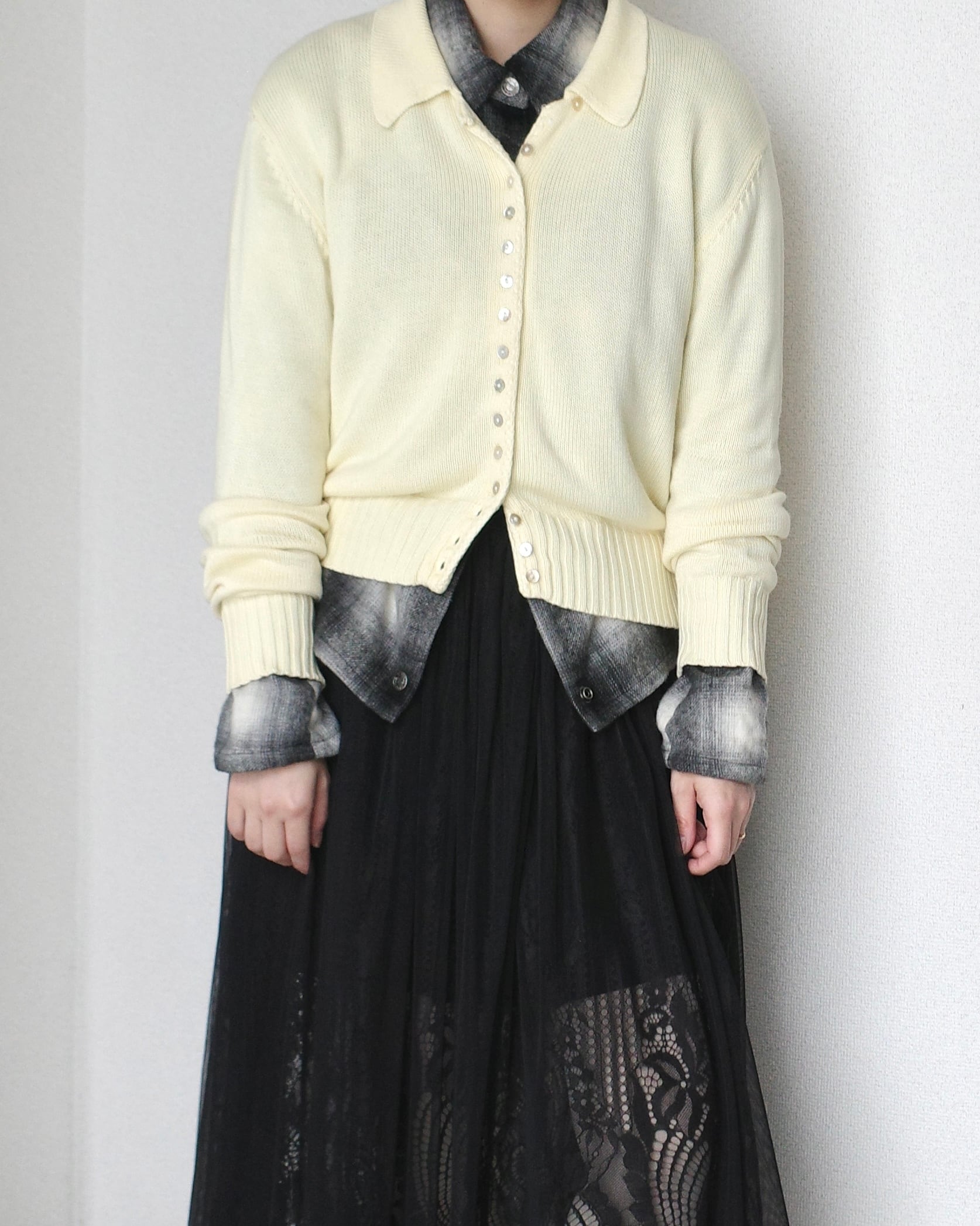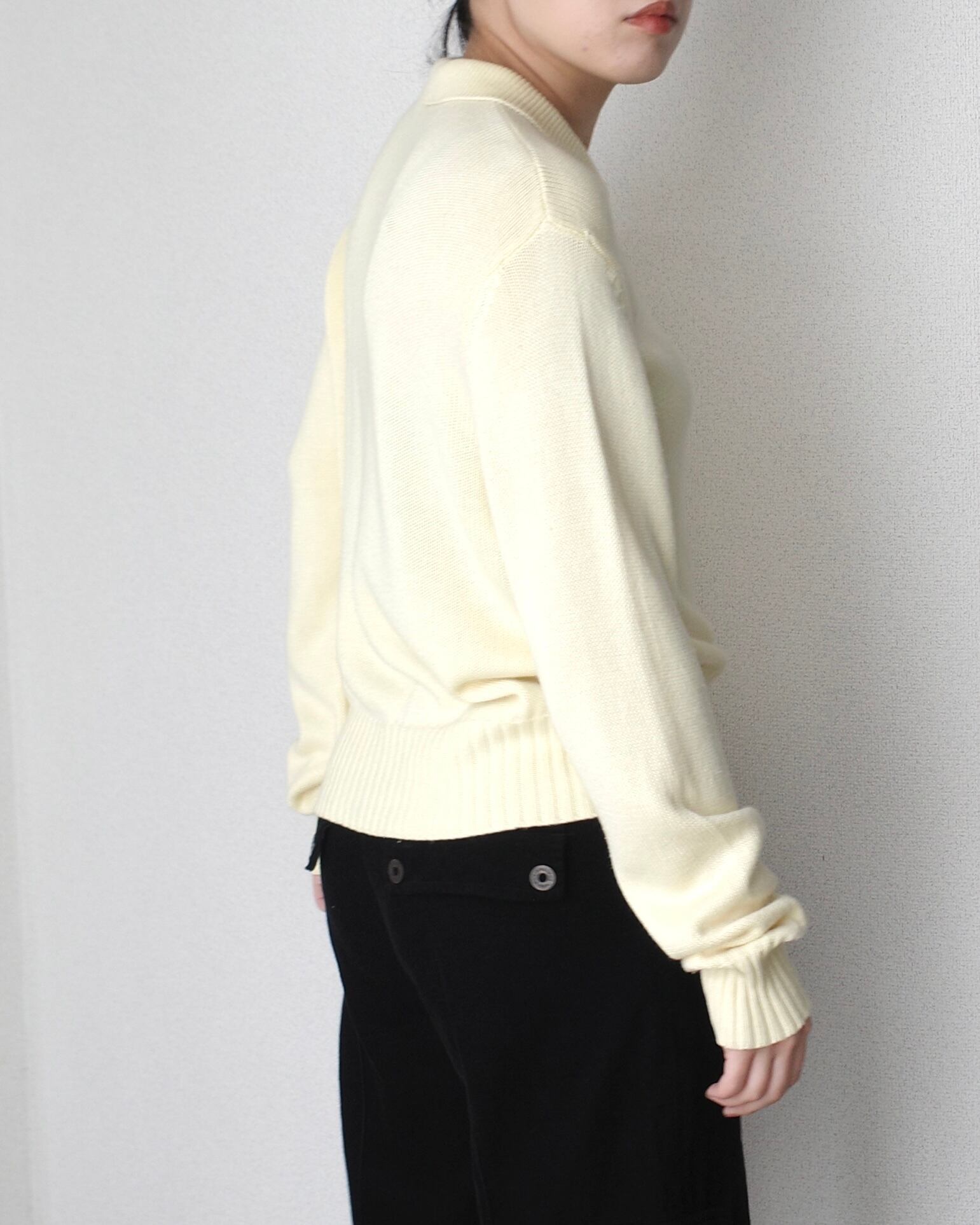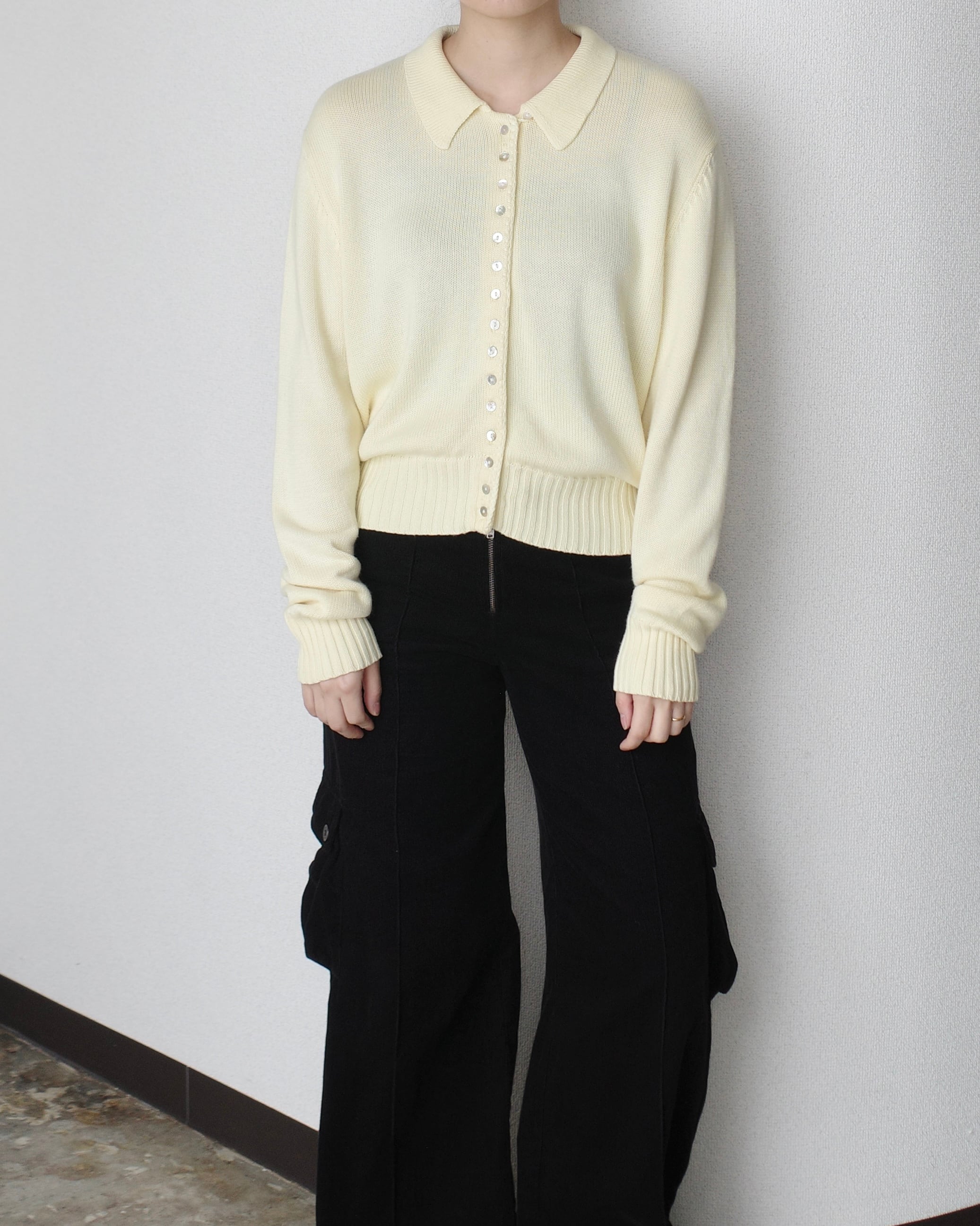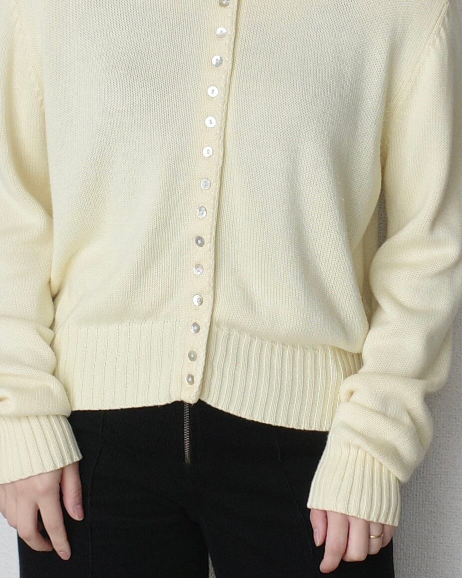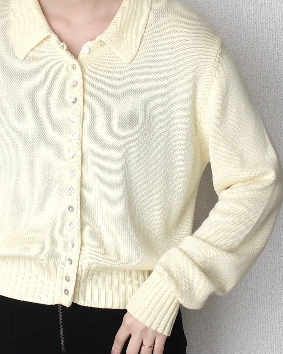 小さなシェルボタンが沢山ついたニットシャツ、