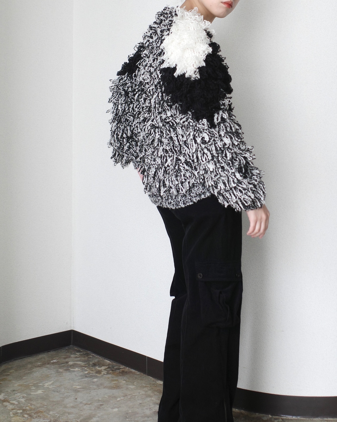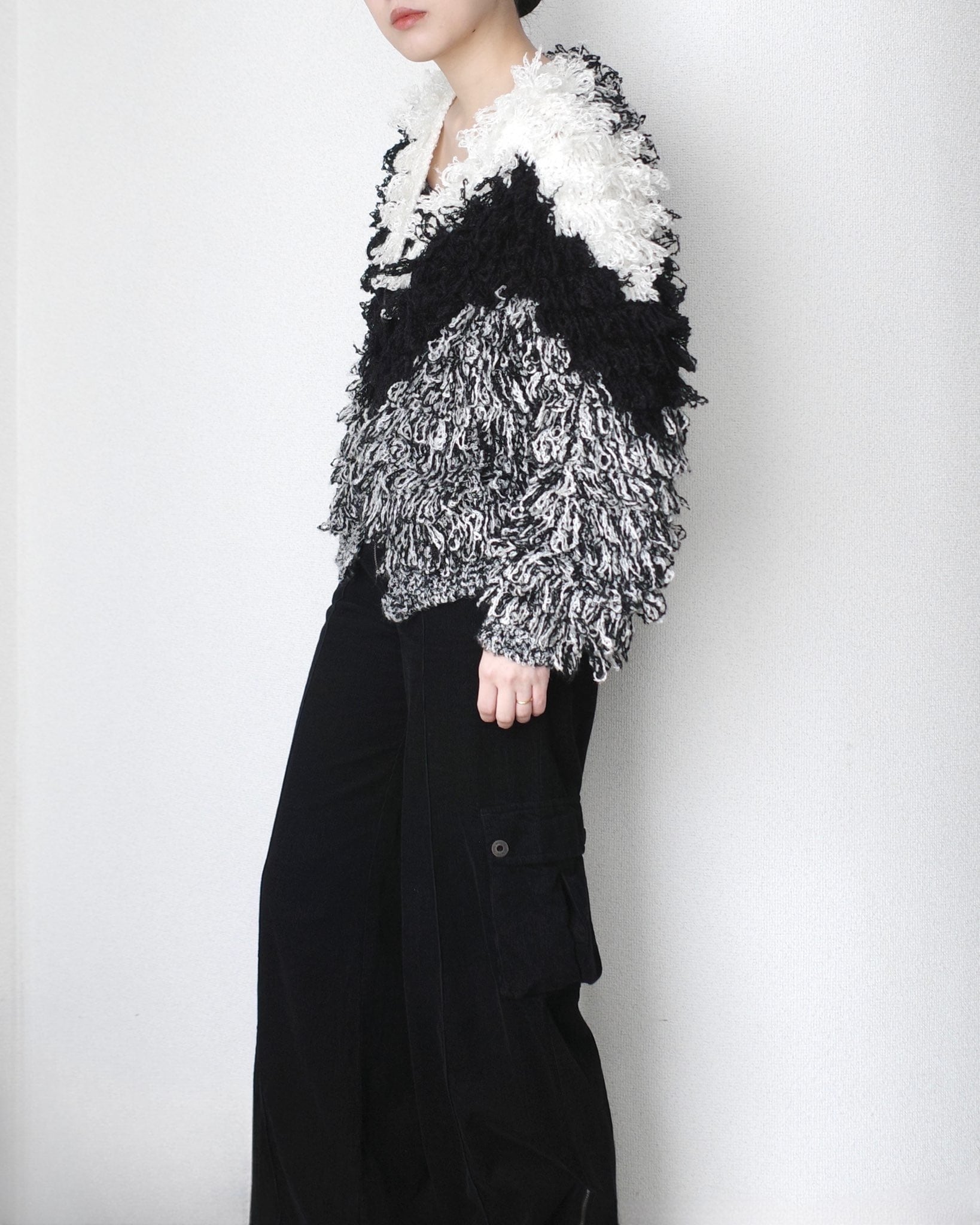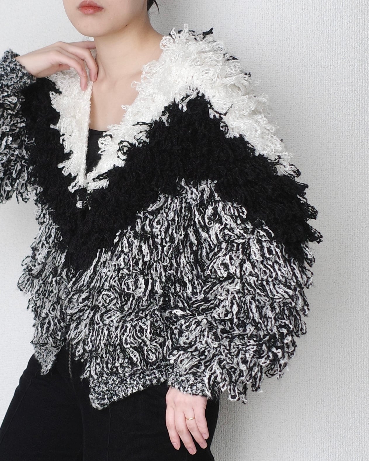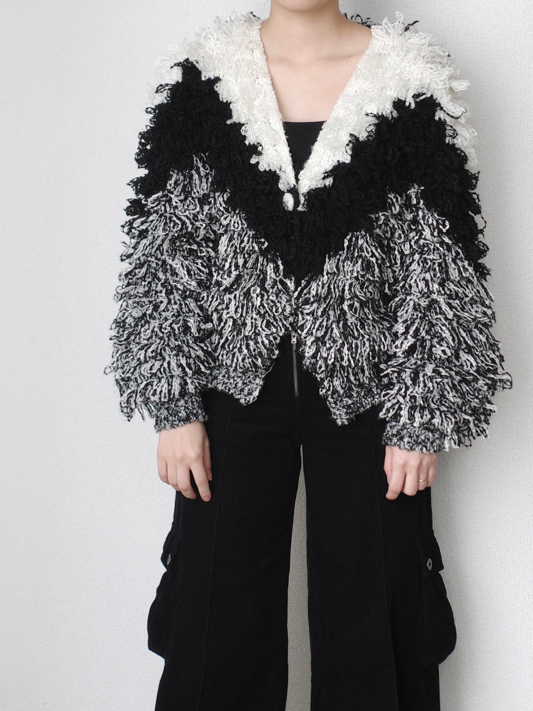 1980's, Monotone loop knit cardigan "HAND KNIT"
