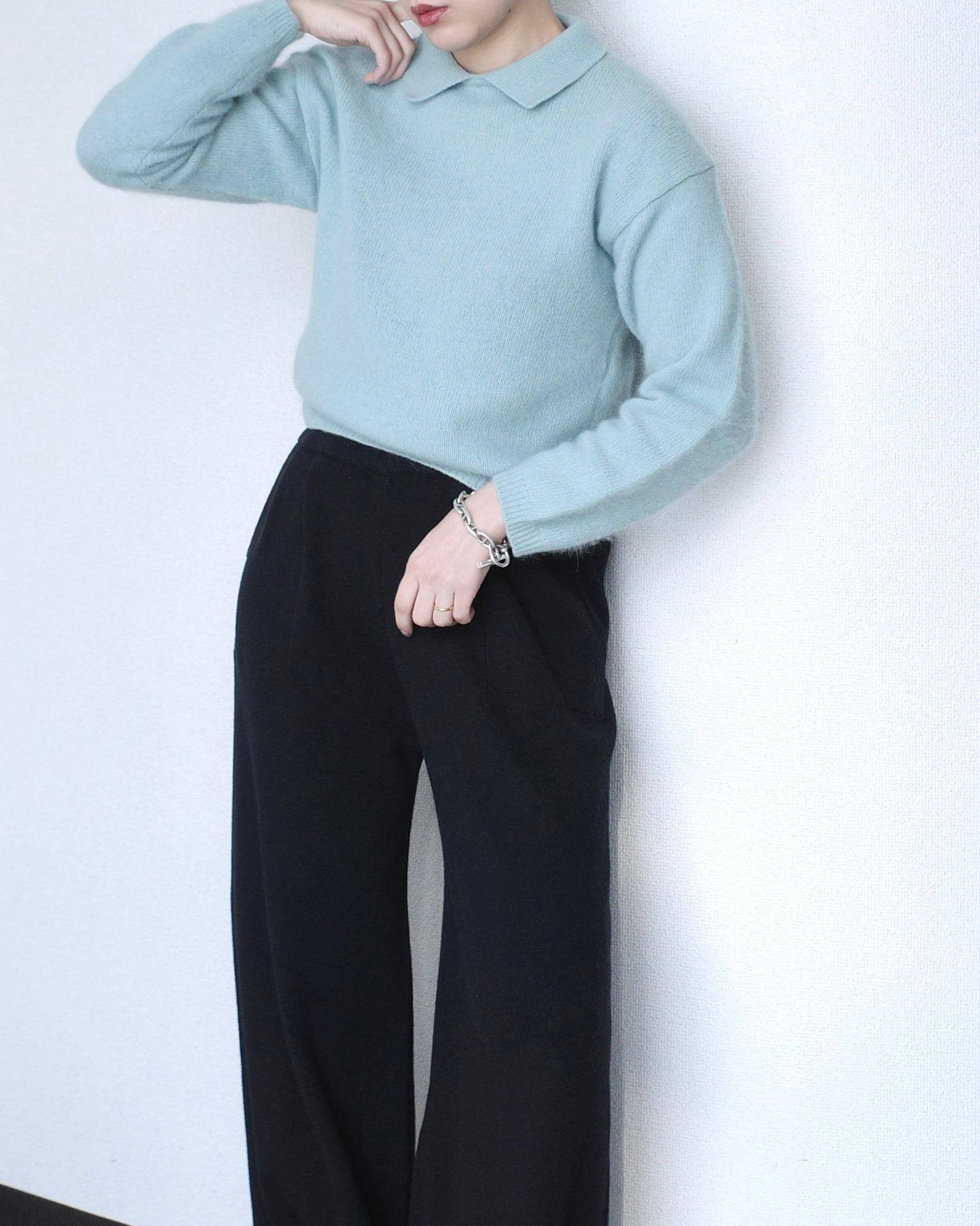 1980's, LAMBS×ANGORA knit polo shirt