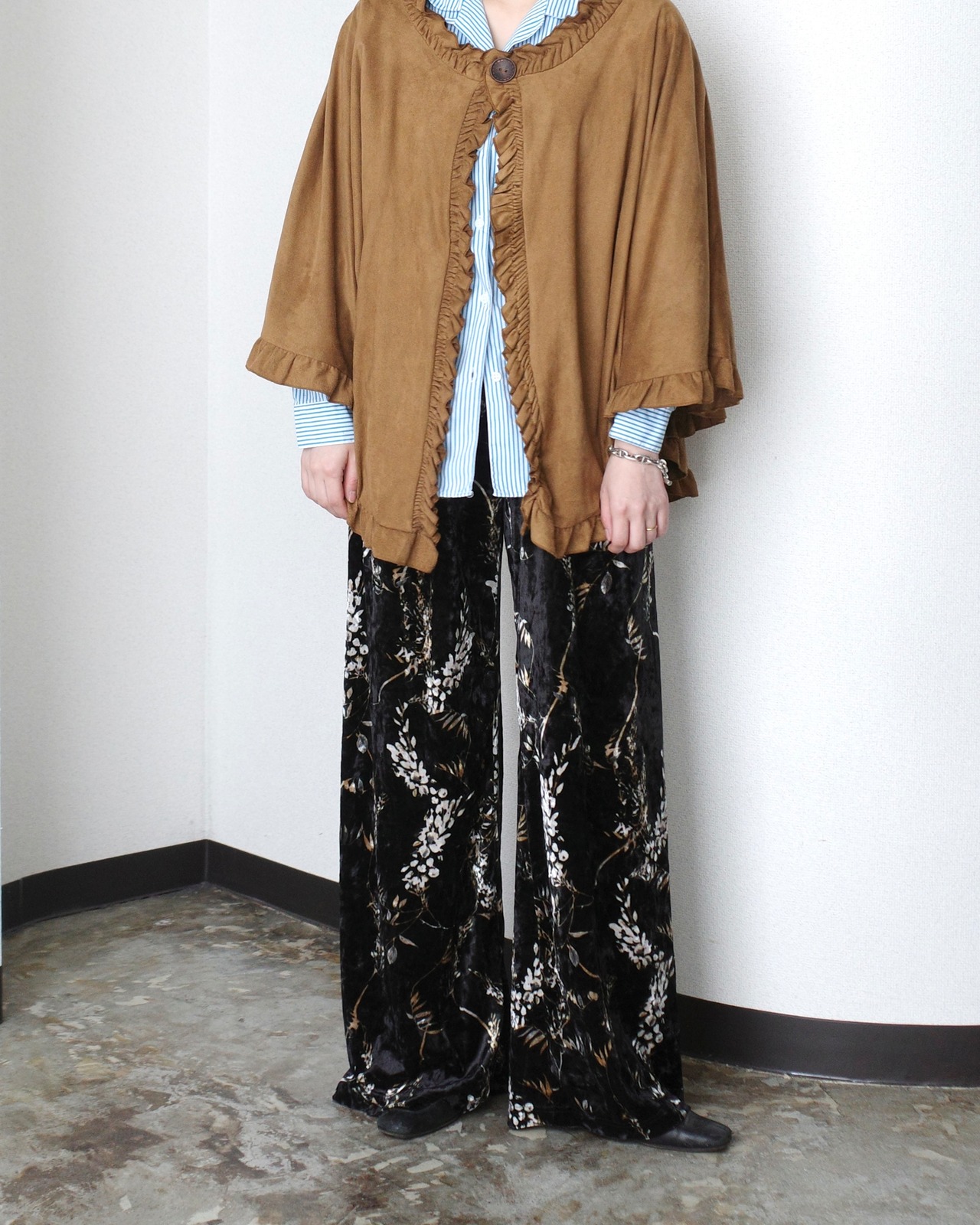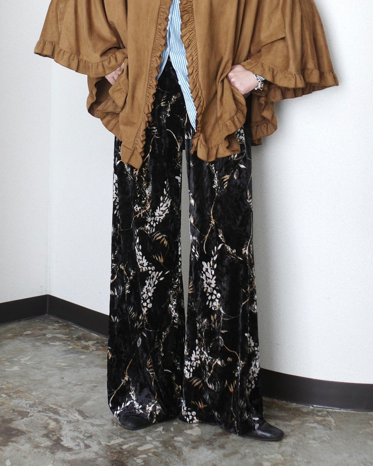 2000's, Botanical pattern velour wide pants