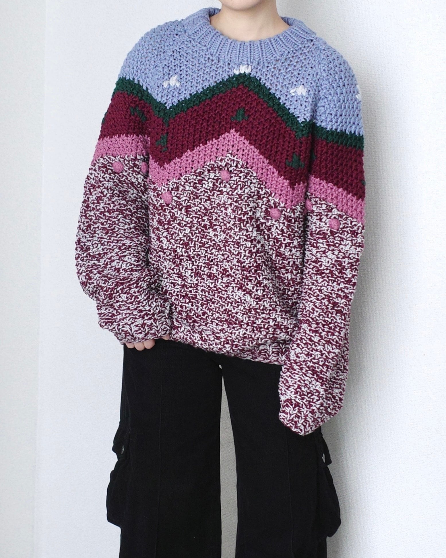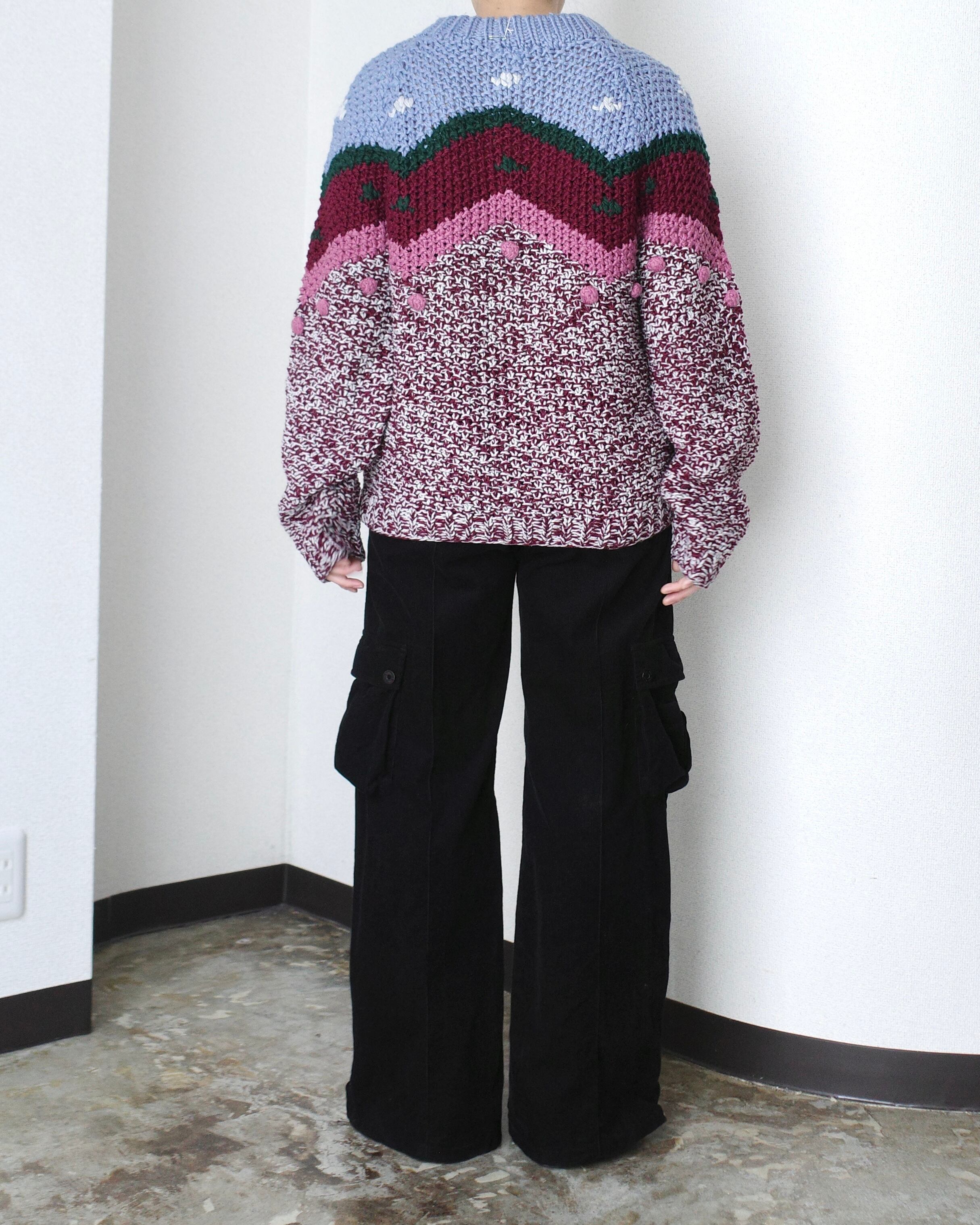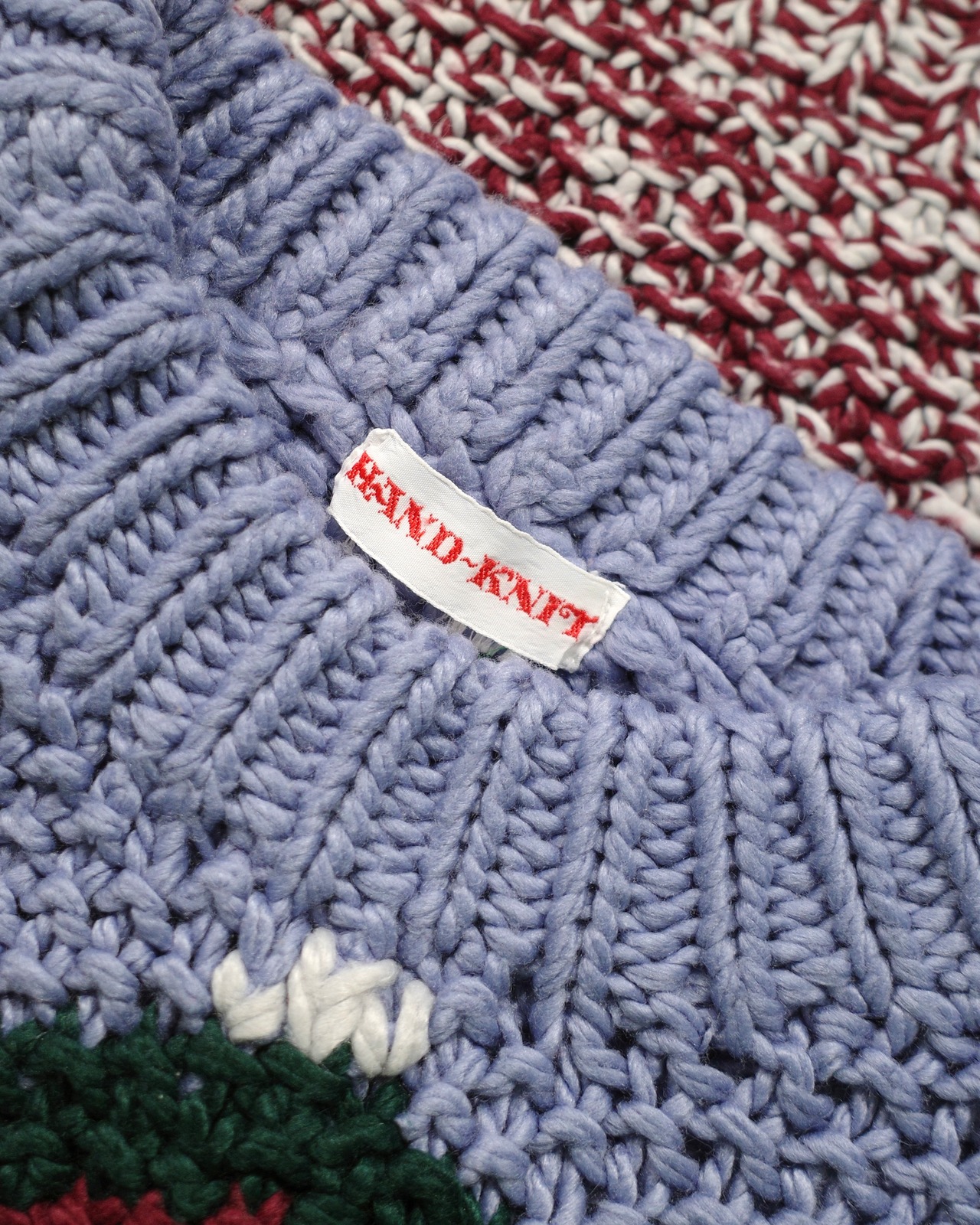 手がかりになるタグには"HAND-KNIT"表記のみ。