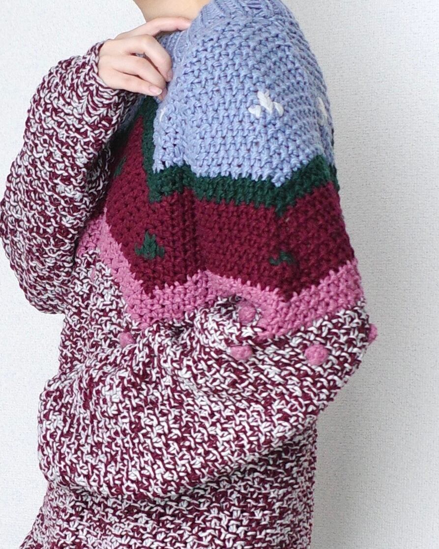 Landscape motif hand knit