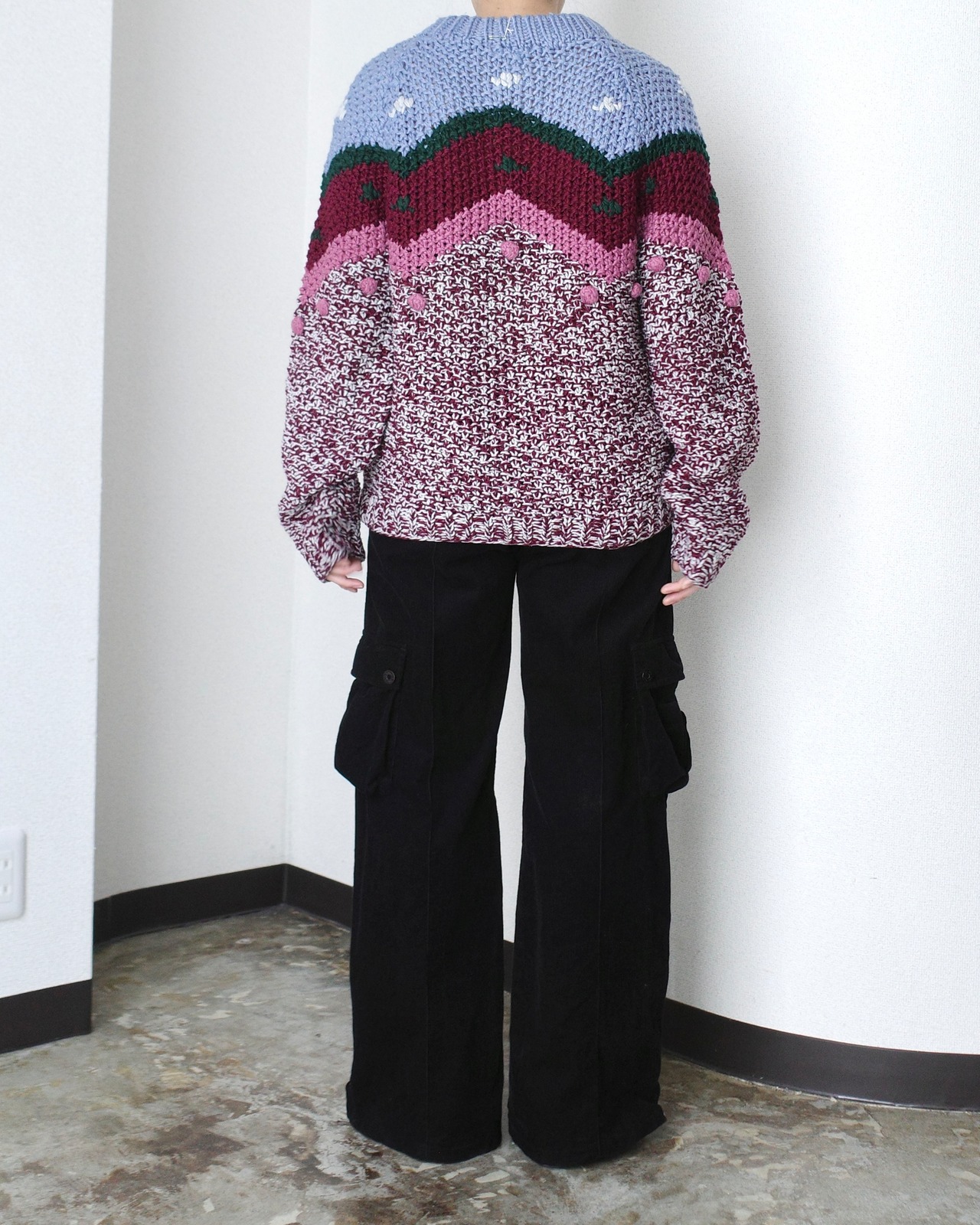 手編みの風合いとマッチした良きニット。