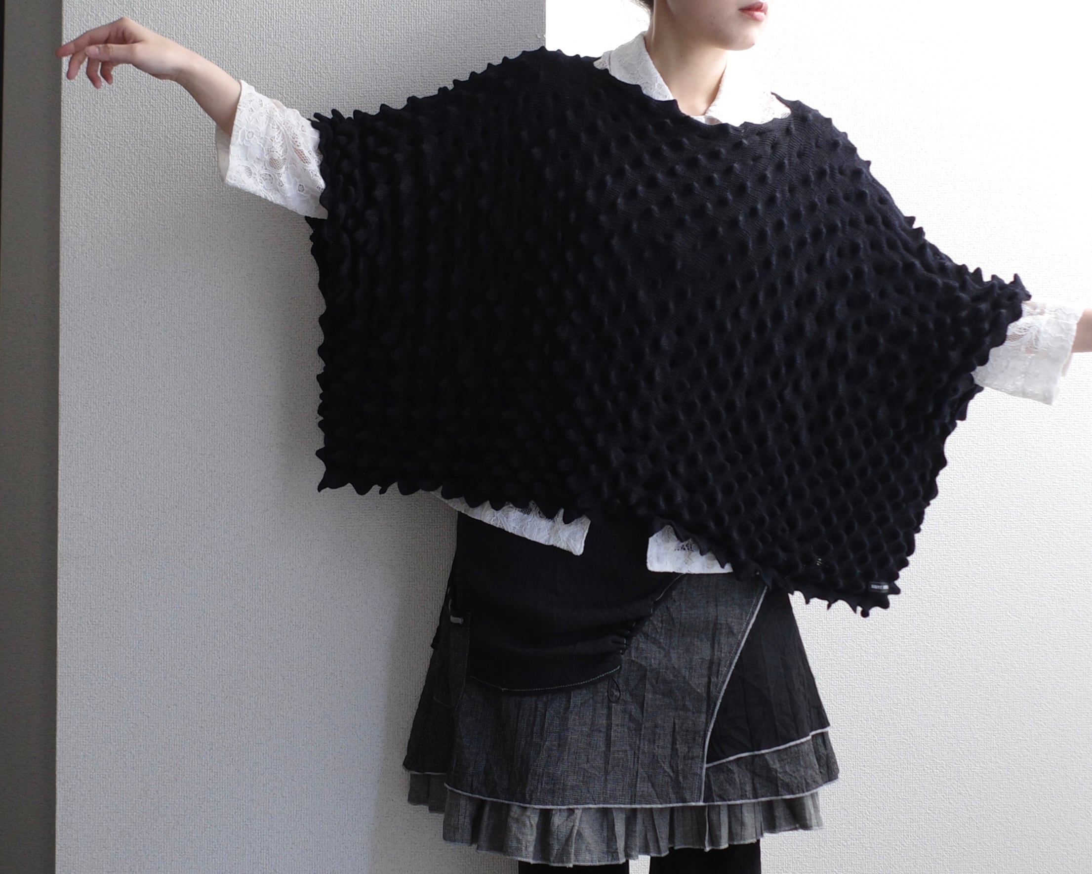 棘状の起伏あるニット生地が抜群に映えます。