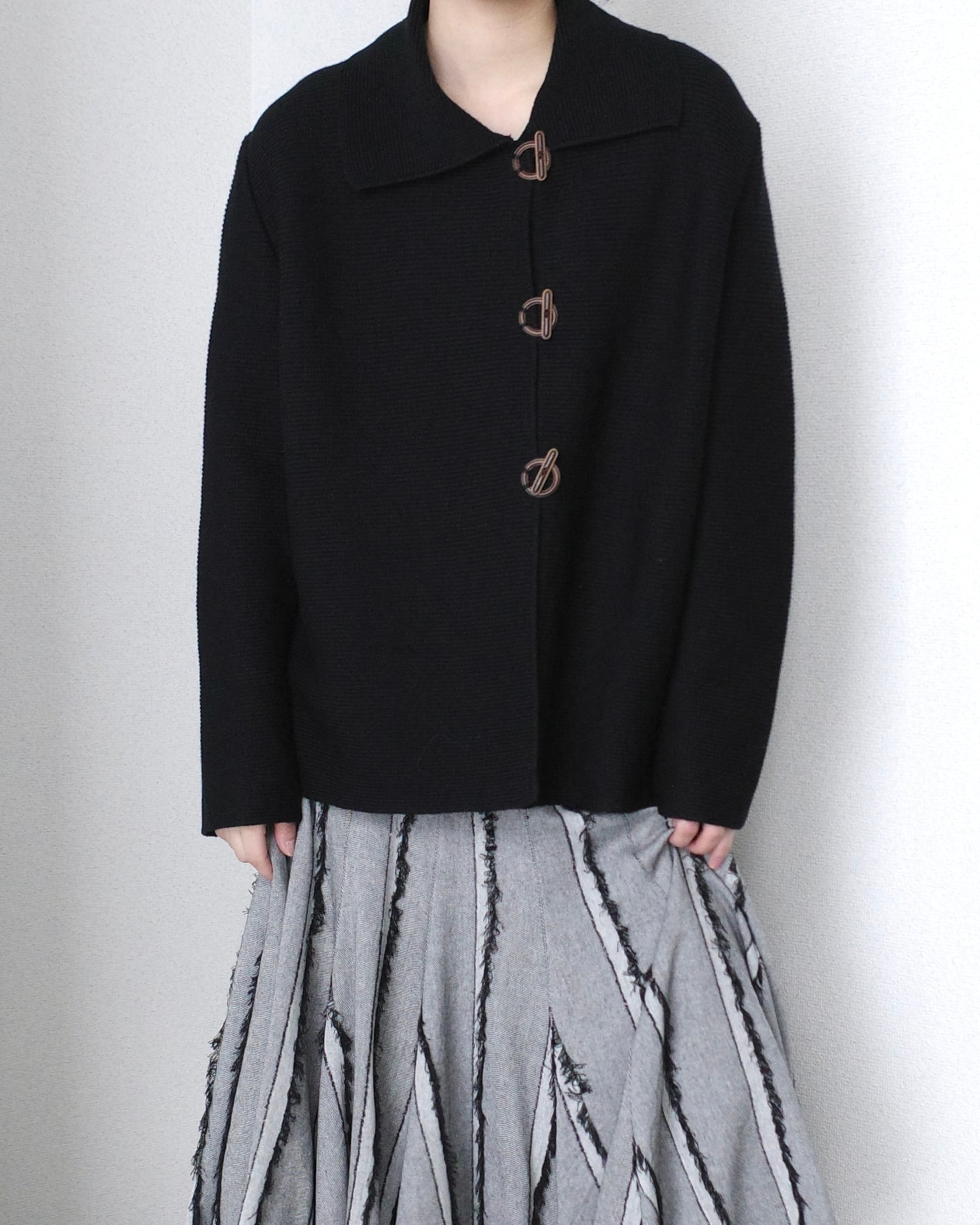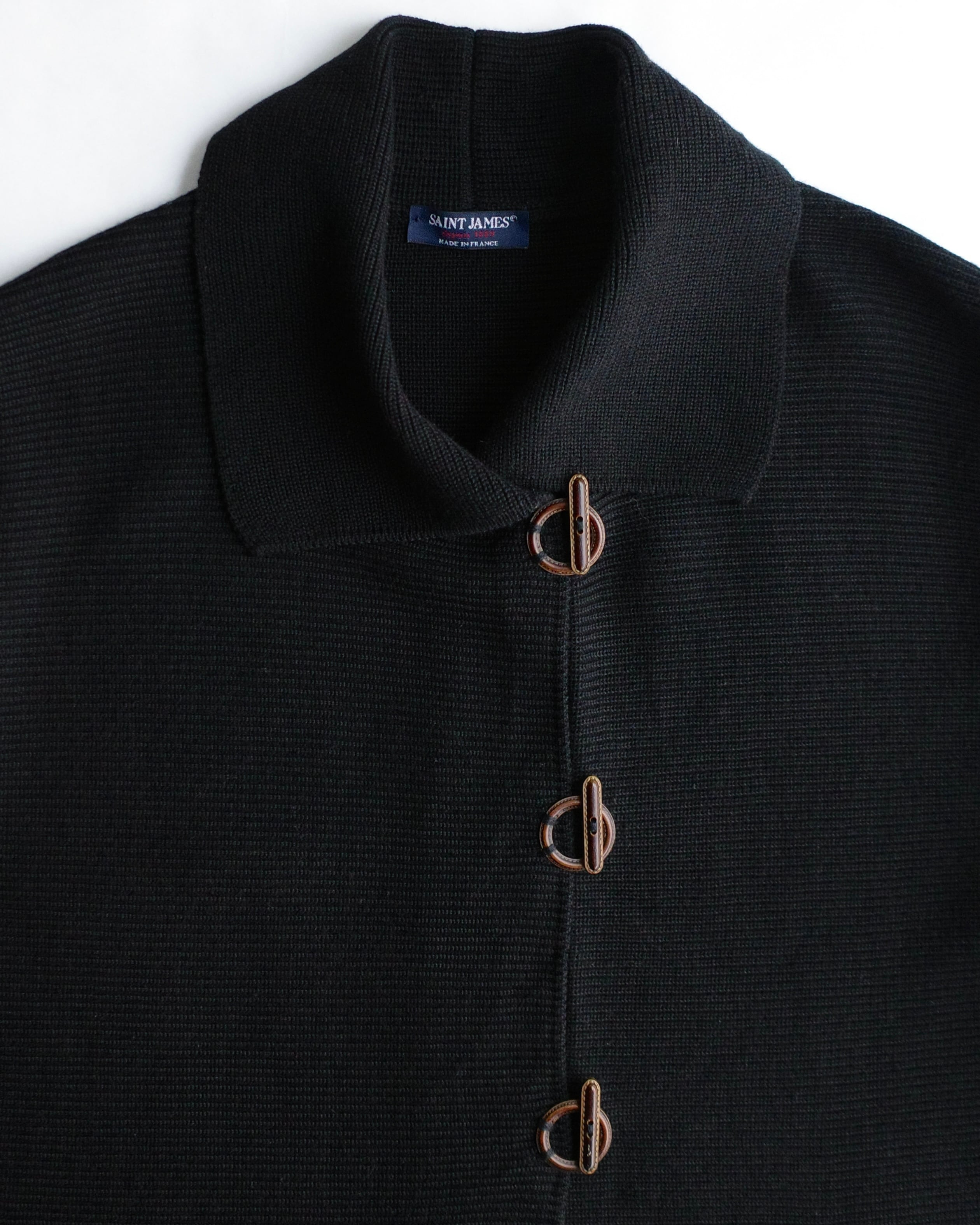 Euro "SAINT JAMES", Knit jacket with Leather toggle buttons (made in France) セントジェームス