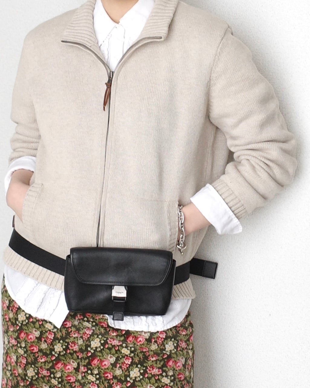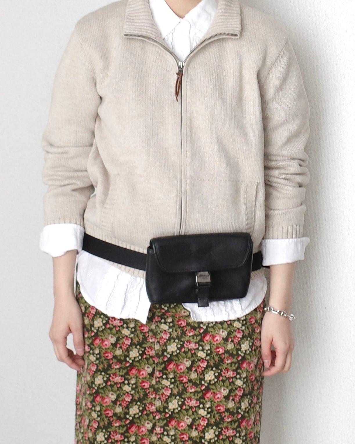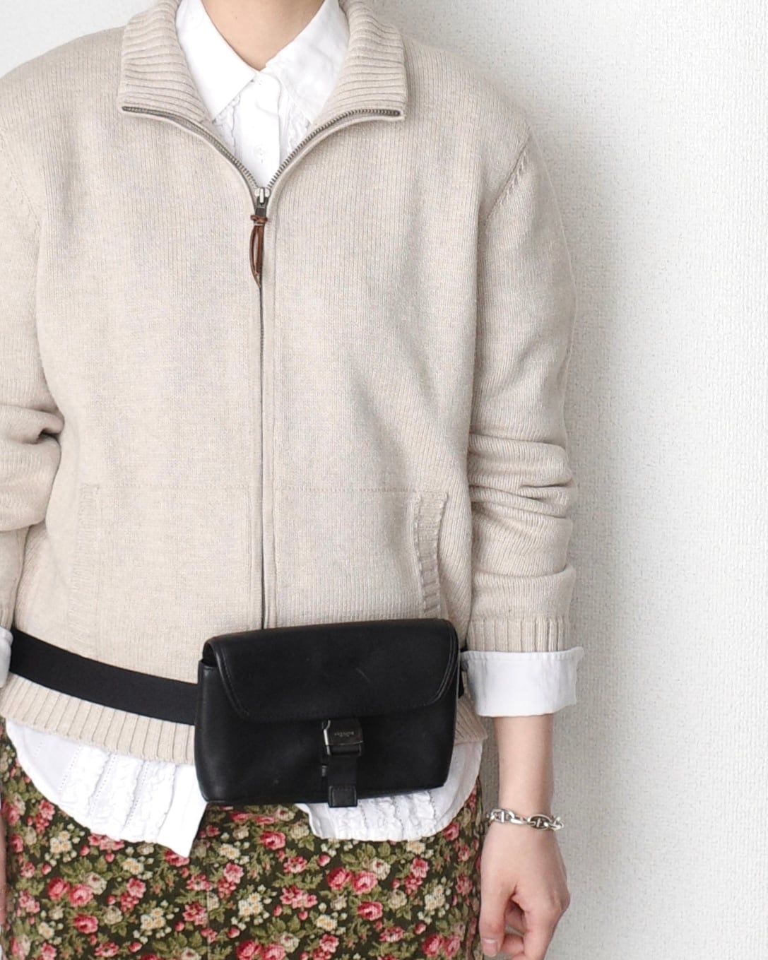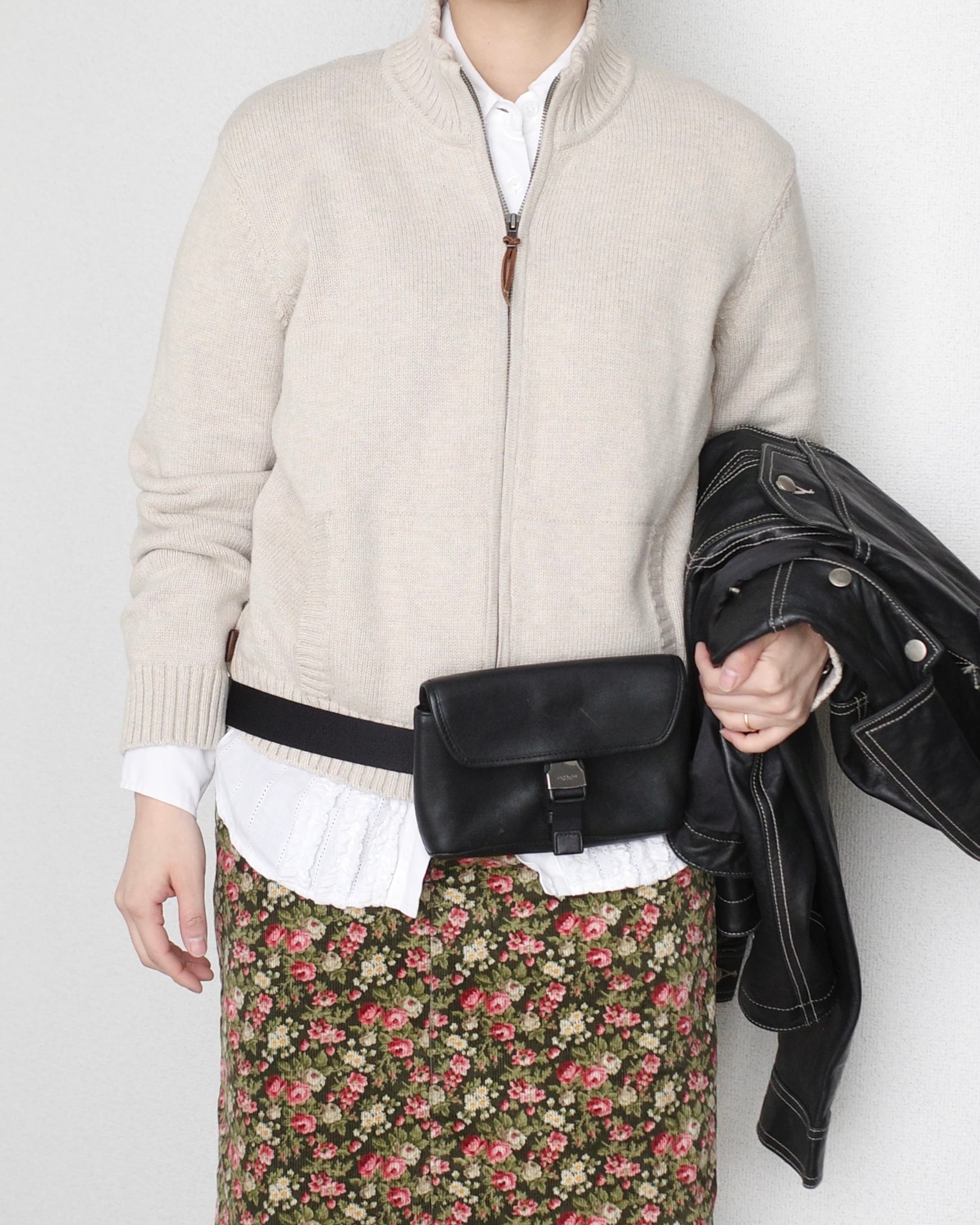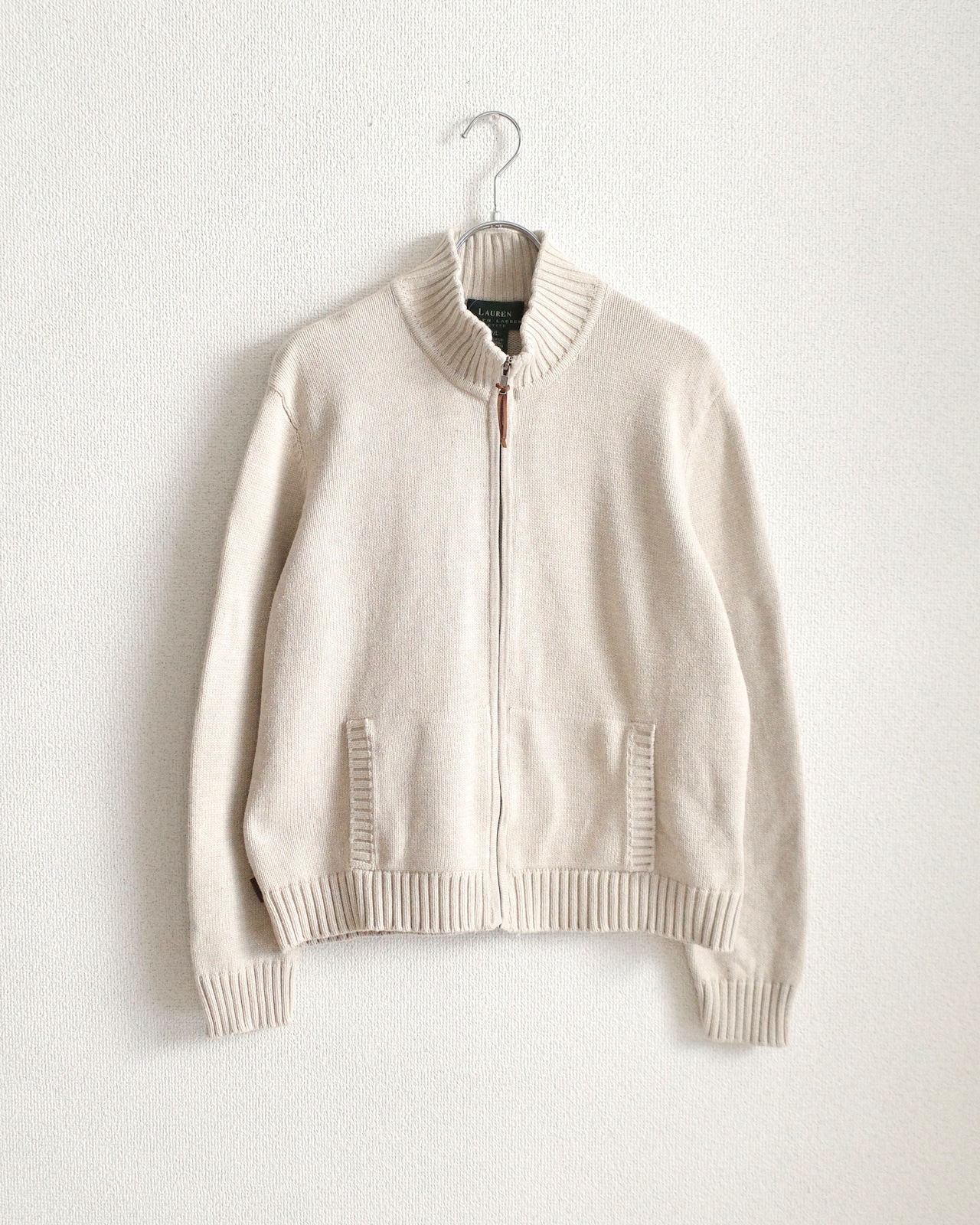 1990’s “LAUREN Ralph Lauren”, Zip-up cotton knit jacket in beige