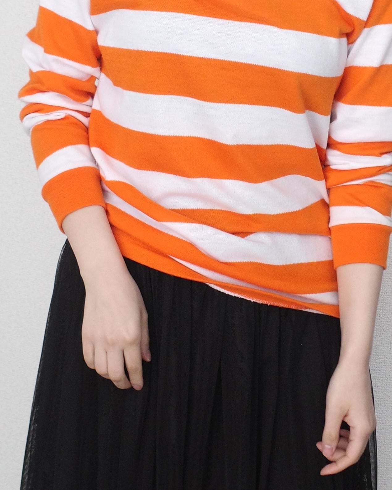 こちらのオレンジ×ホワイトのボーダーに出会いました。