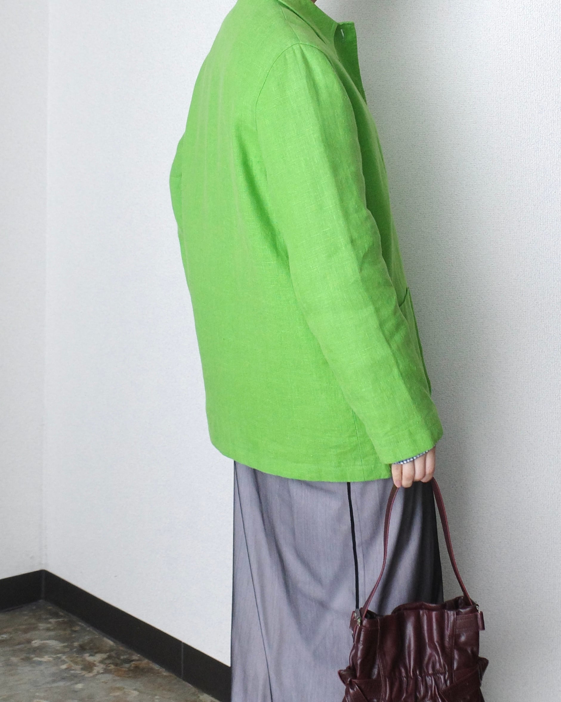 鮮やかなグリーンとの意外性ある組み合わせ。