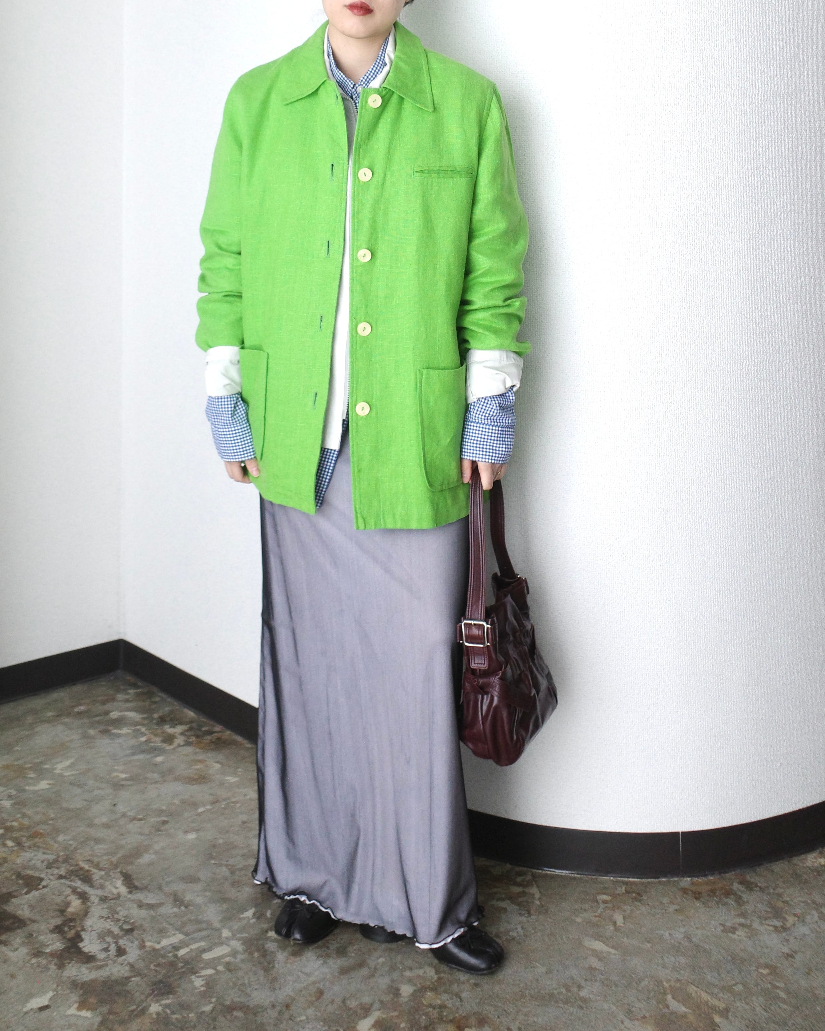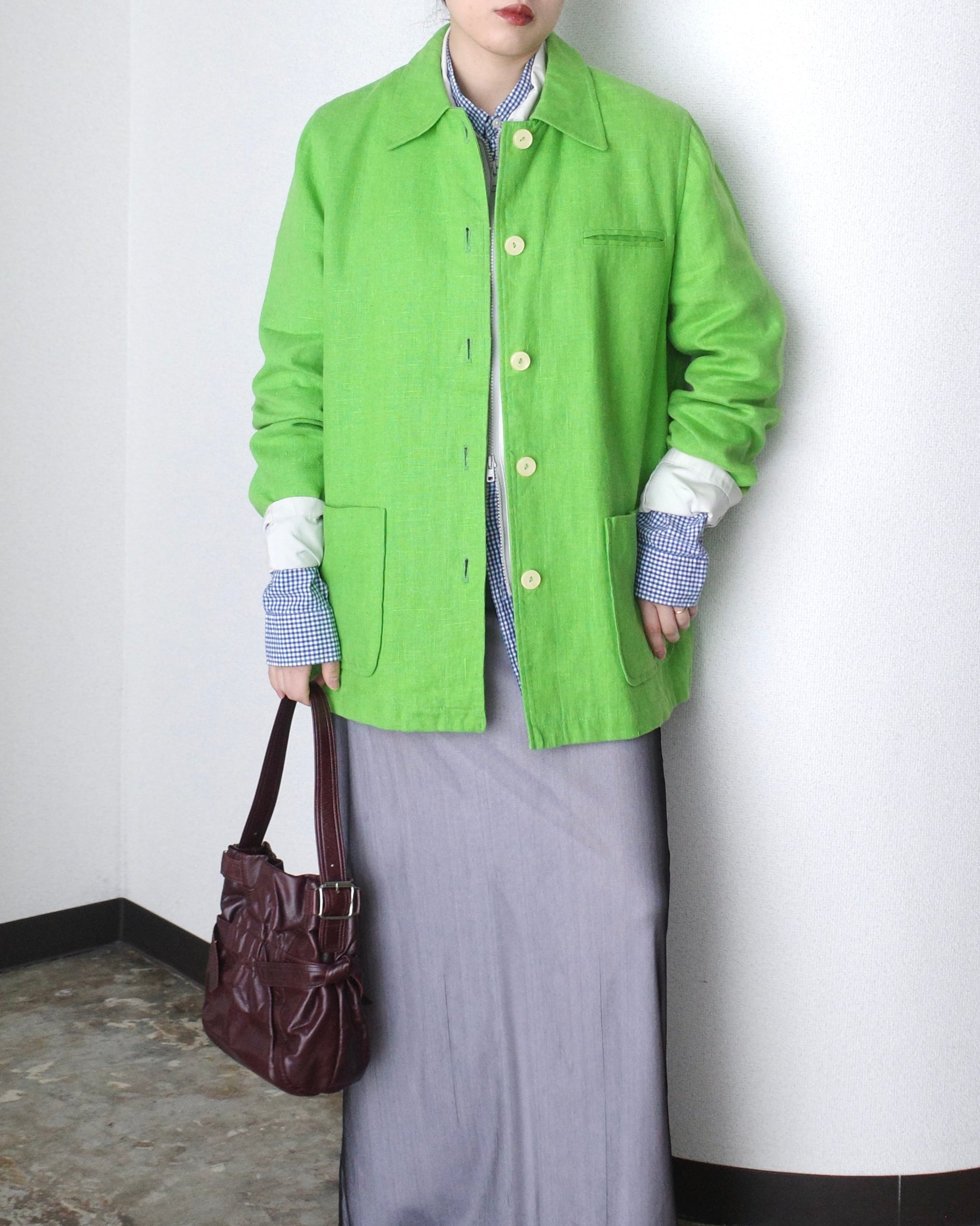 1990's, Linen coverall in vivid green