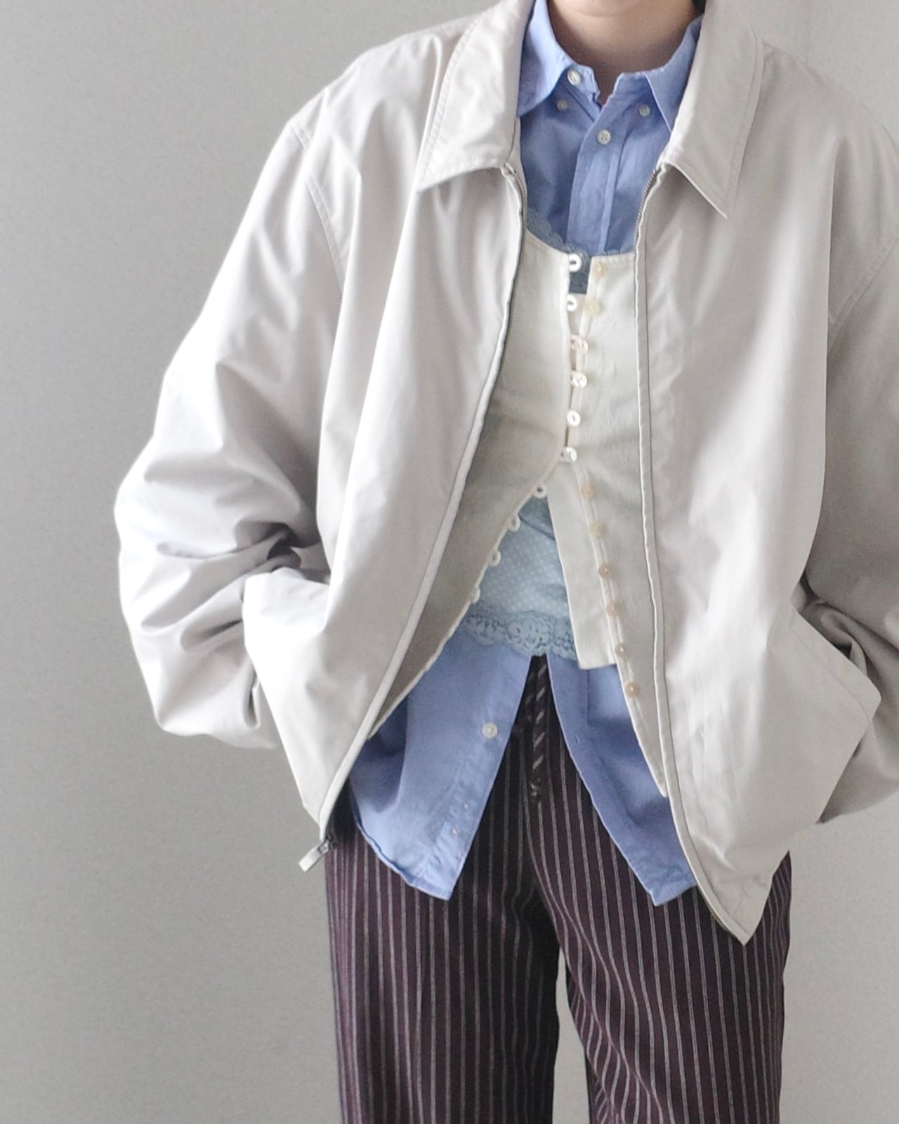 マットで上品な色合いと素材感のライトジャケット。