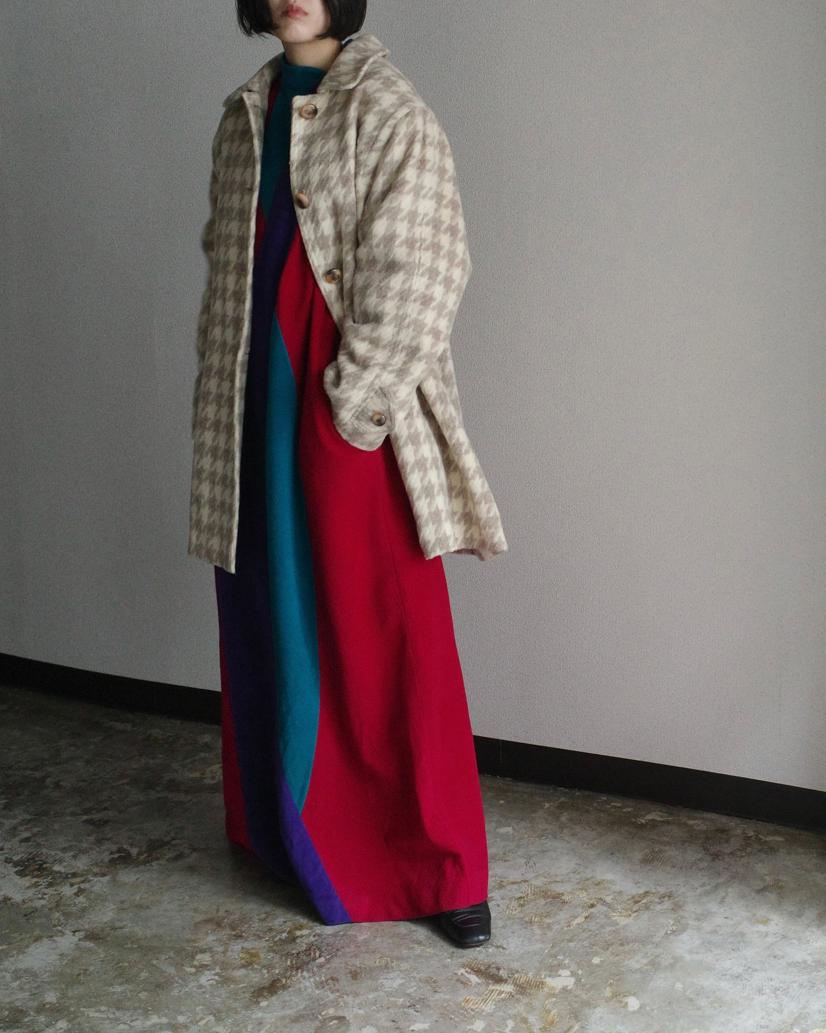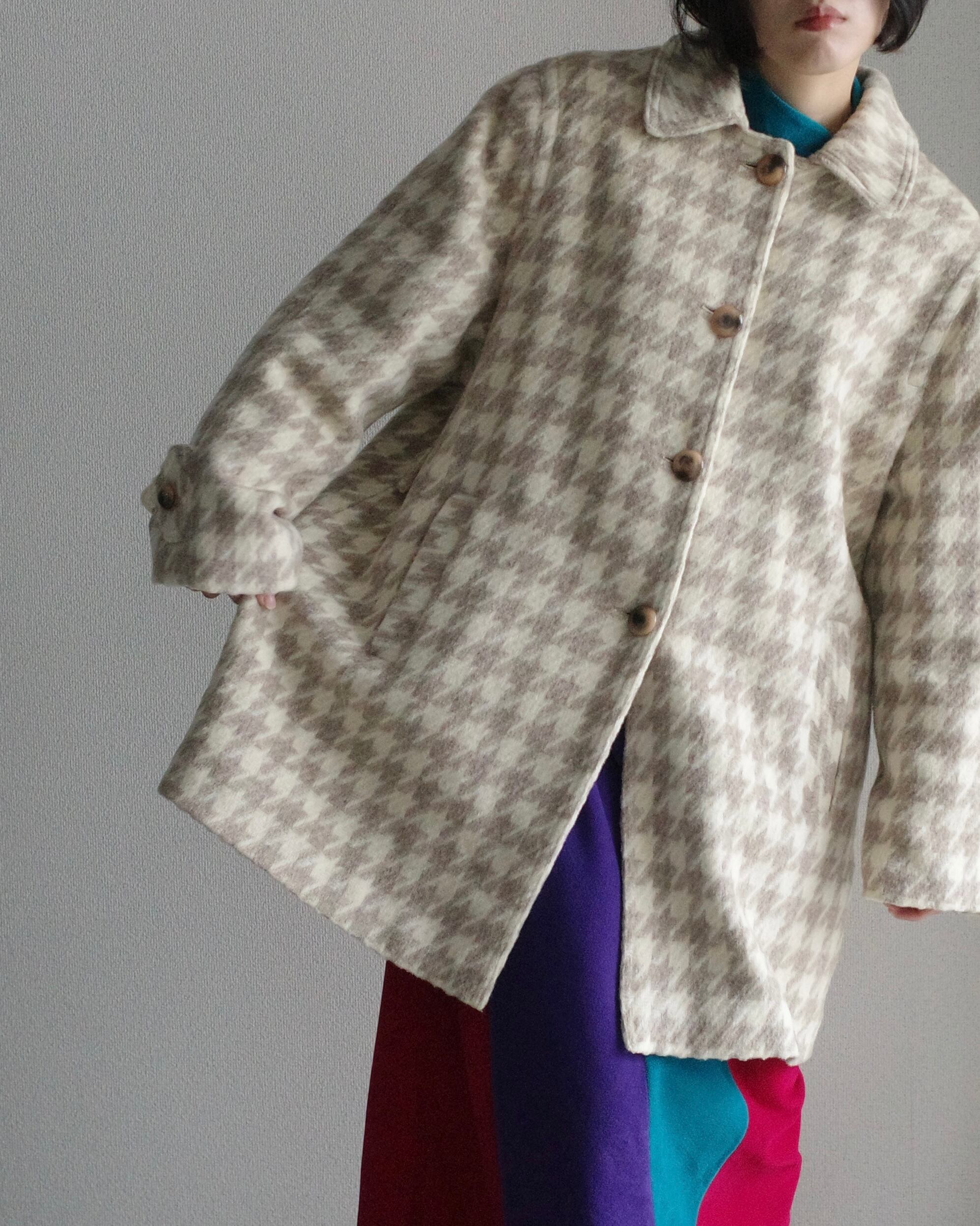 Euro, Houndstooth pattern Lama Wool Coat (made in France)