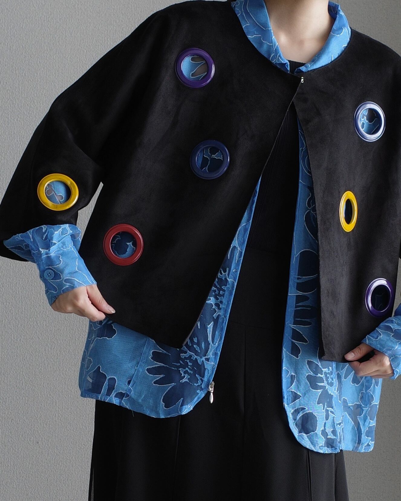 ノーカラージャケット型ゆえのスタイリングの広さも