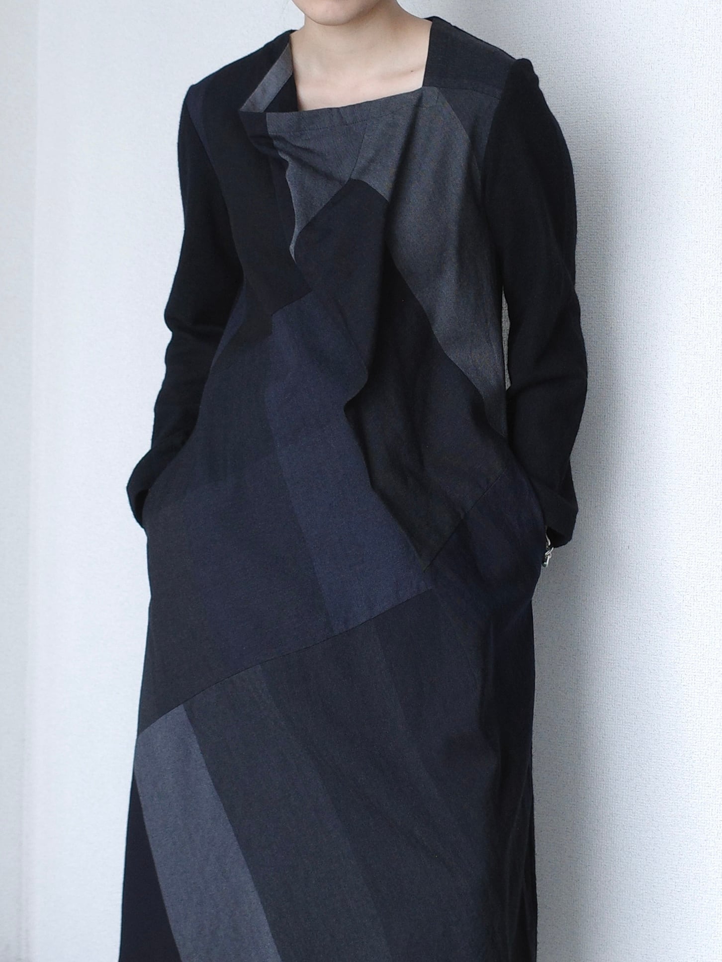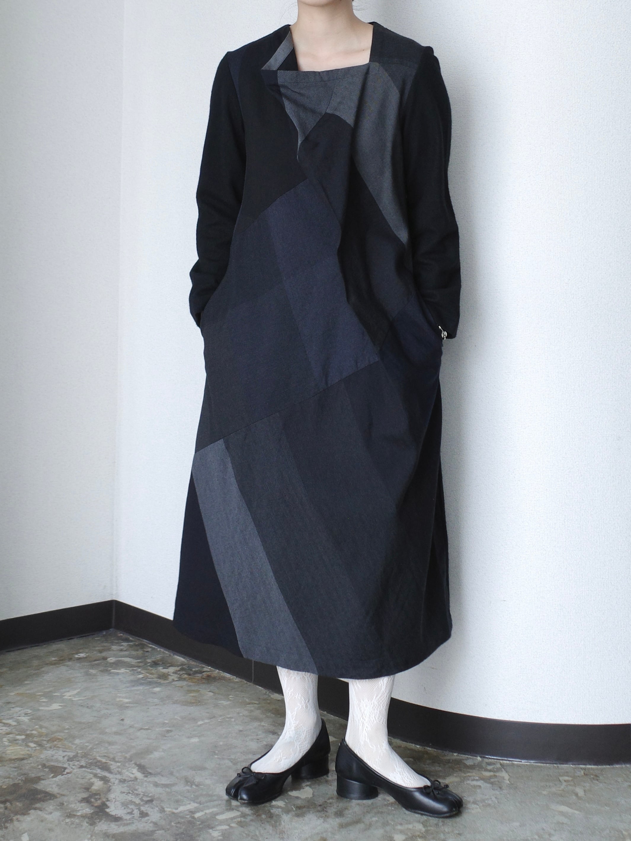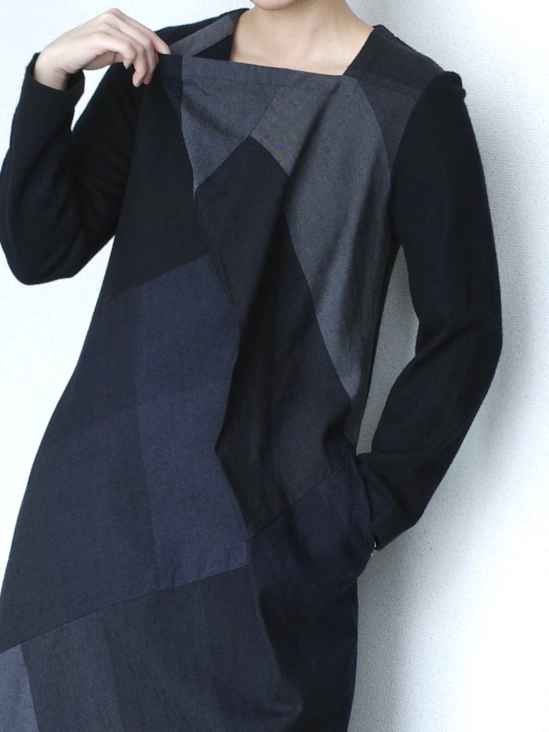 1990's "tricot Comme des Garcons", Wool fabric patchwork dress コムデギャルソン