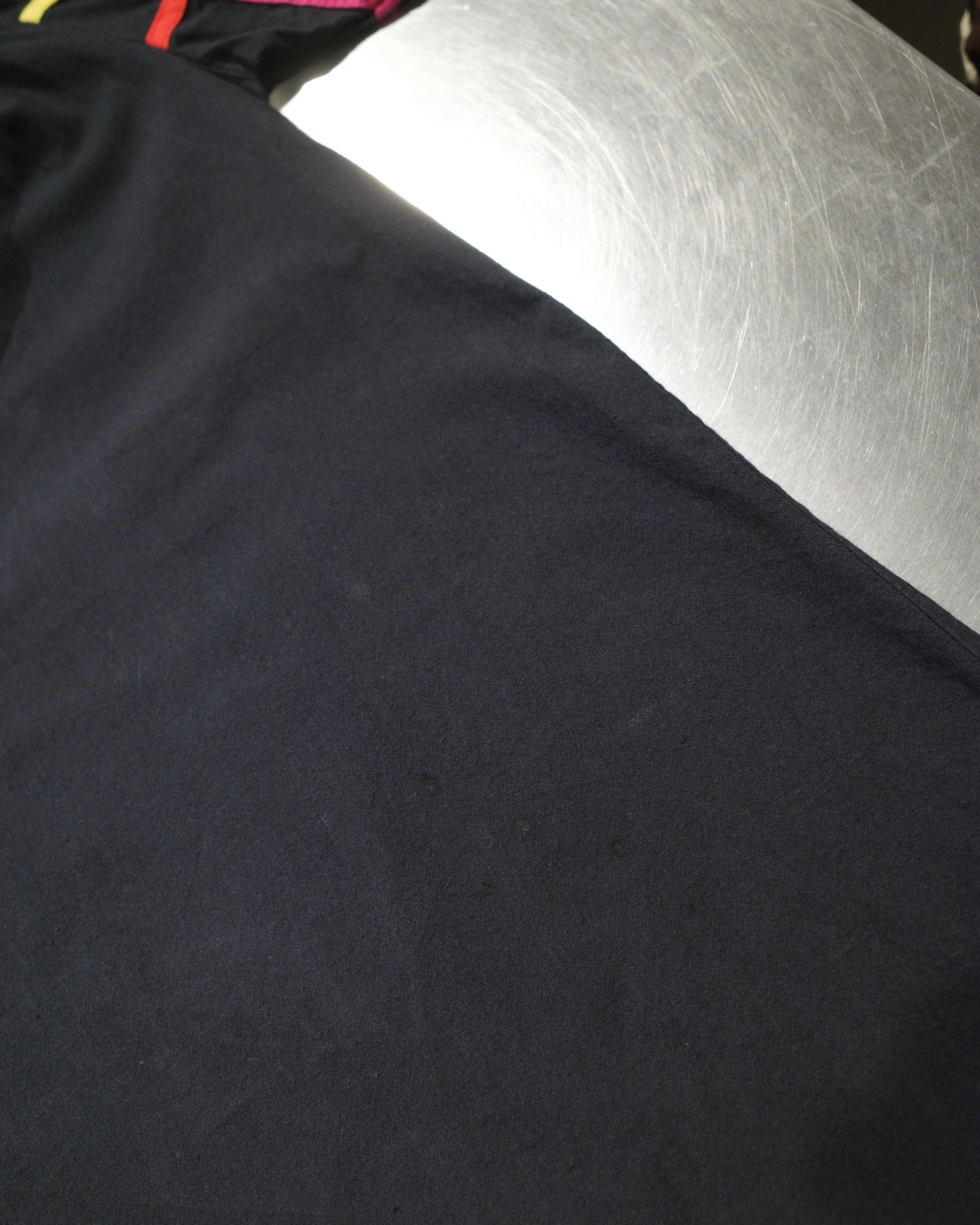 全体はブラック、袖にカラフルなアレンジが加わります。