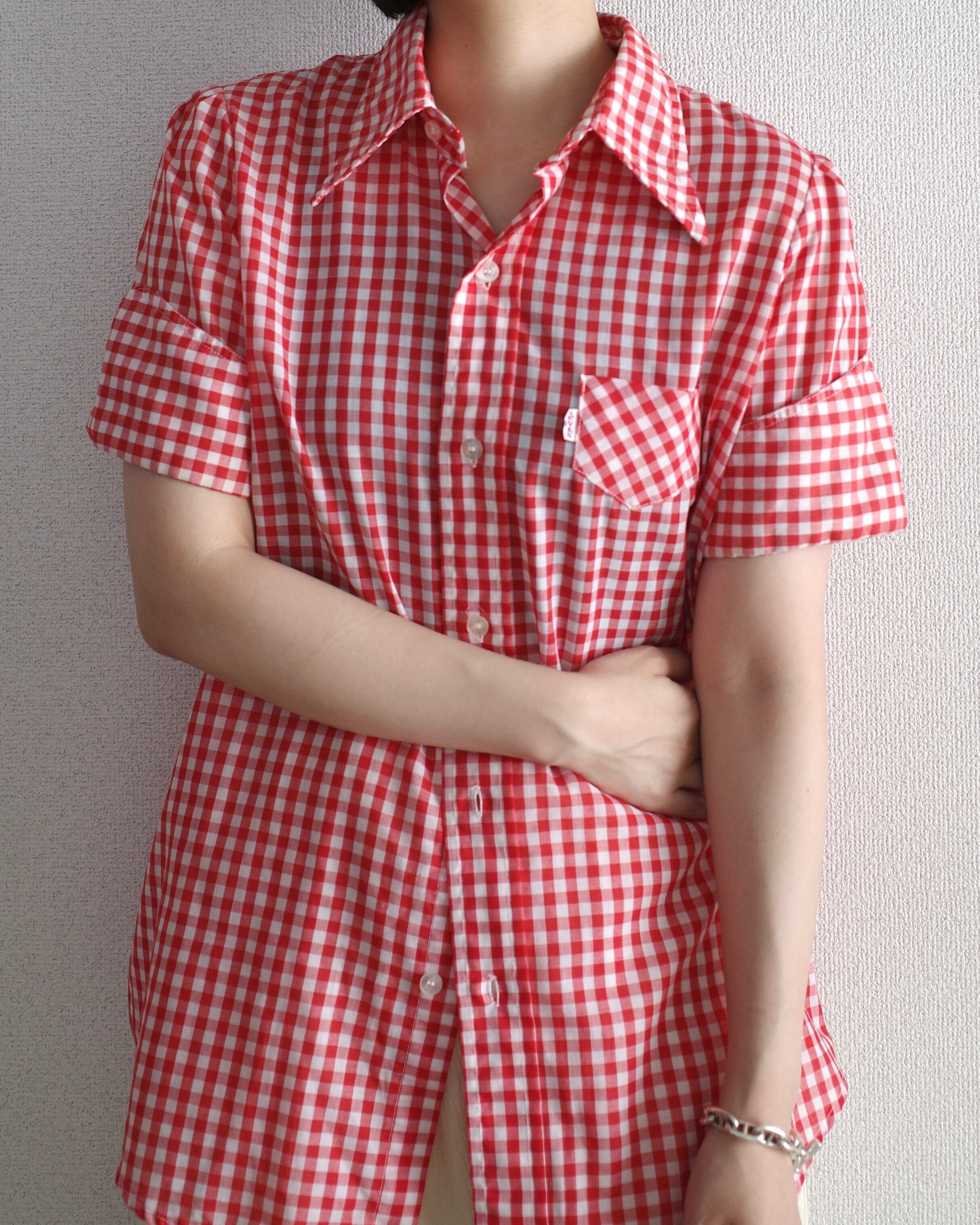 1970's vintage "Levi's", Gingham Check Shirt with very small pocket