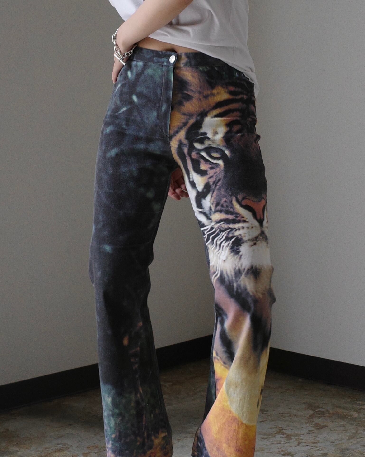 Euro vintage, Tiger photo print Flare Pants (made in Italy)