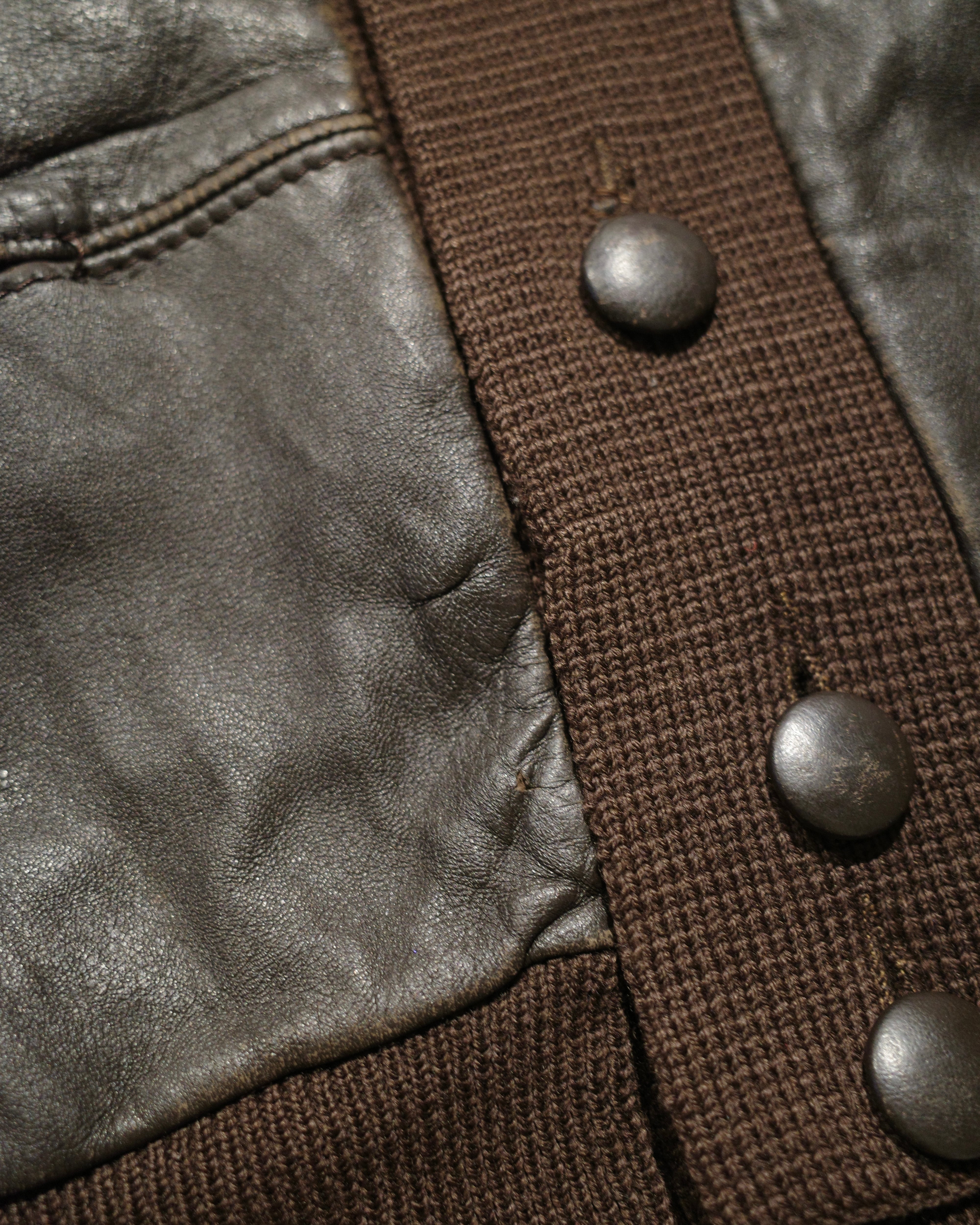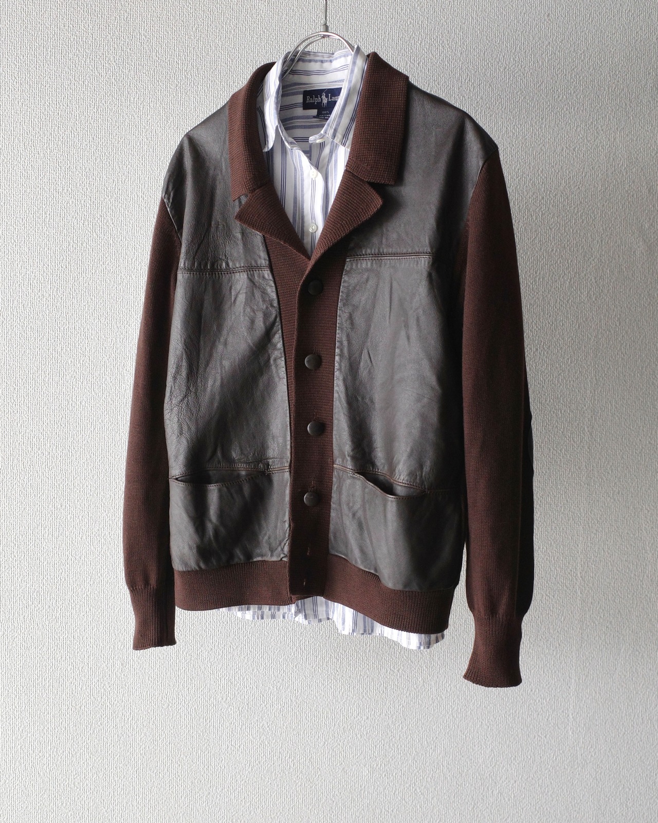 Euro vintage, Leather switching Knit Jacket with Elbow patch