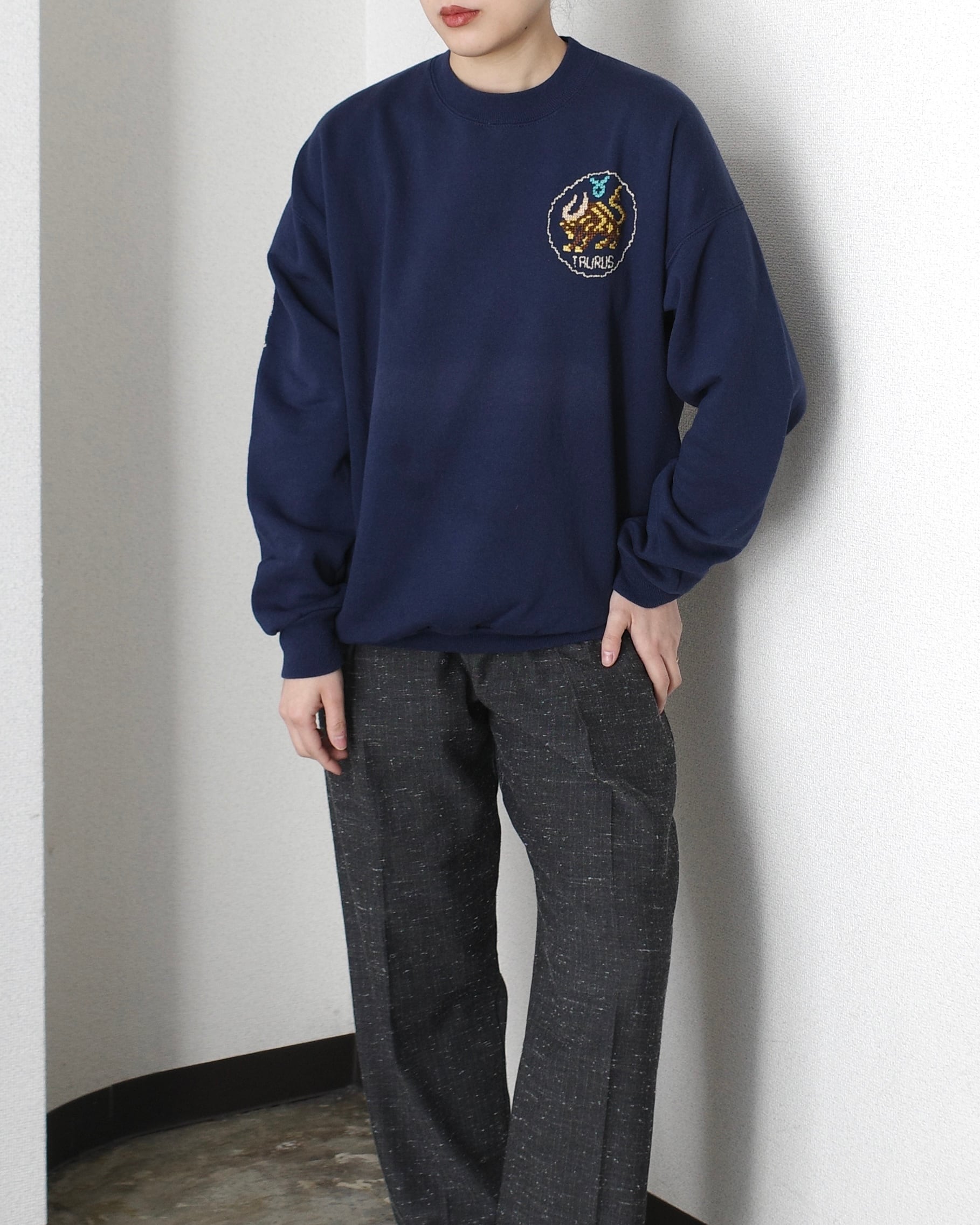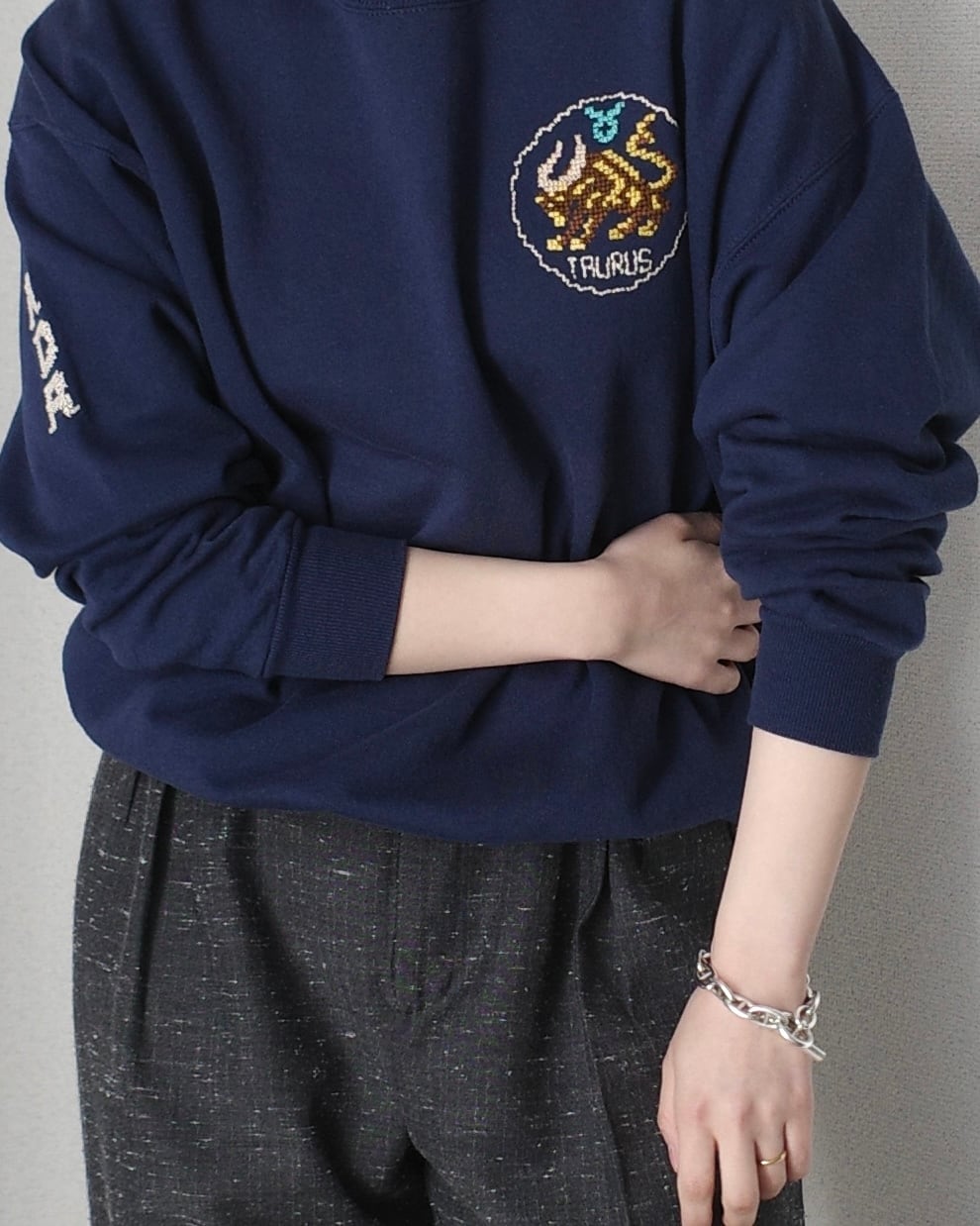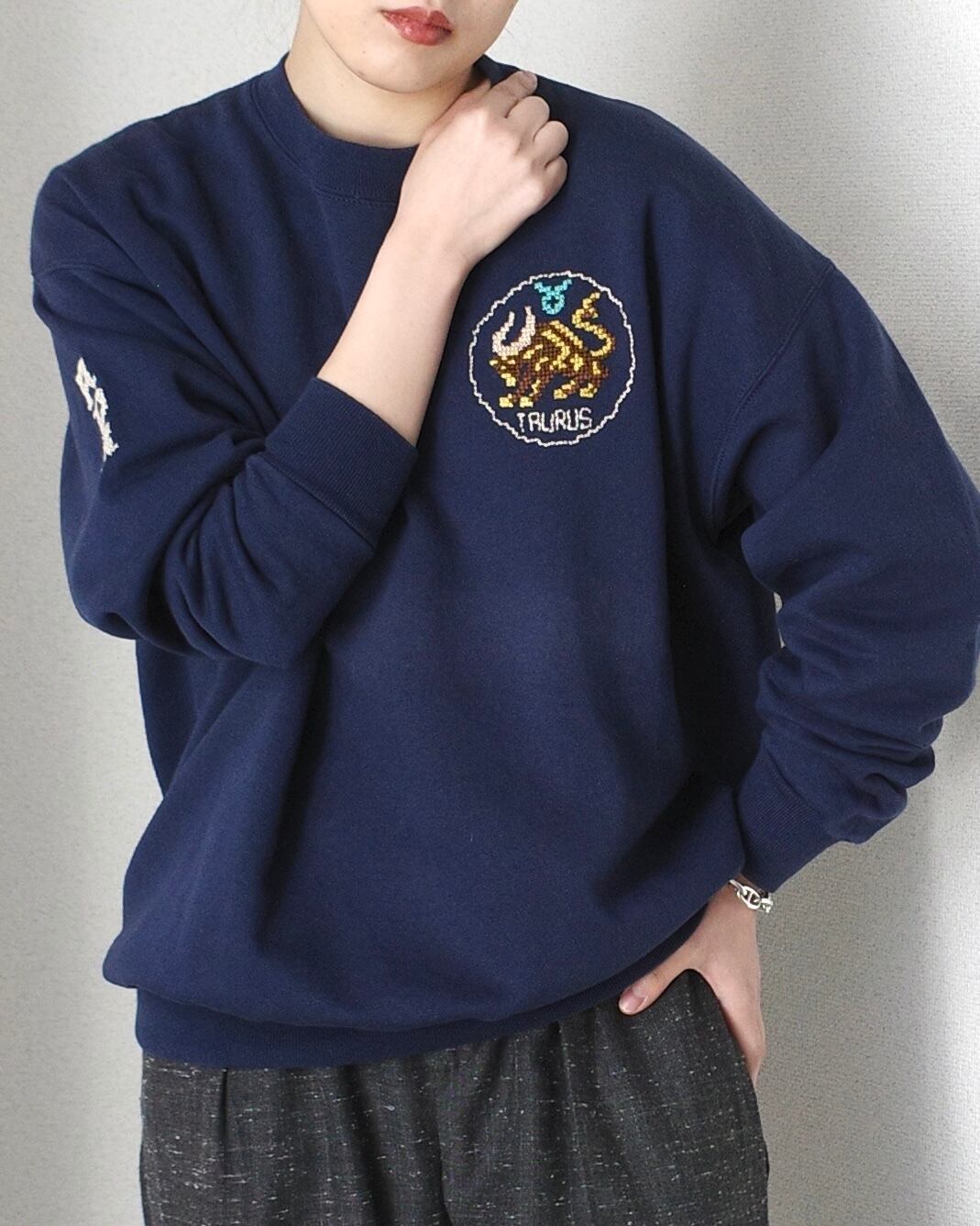 クロスステッチで刺繍されたスウェットです。