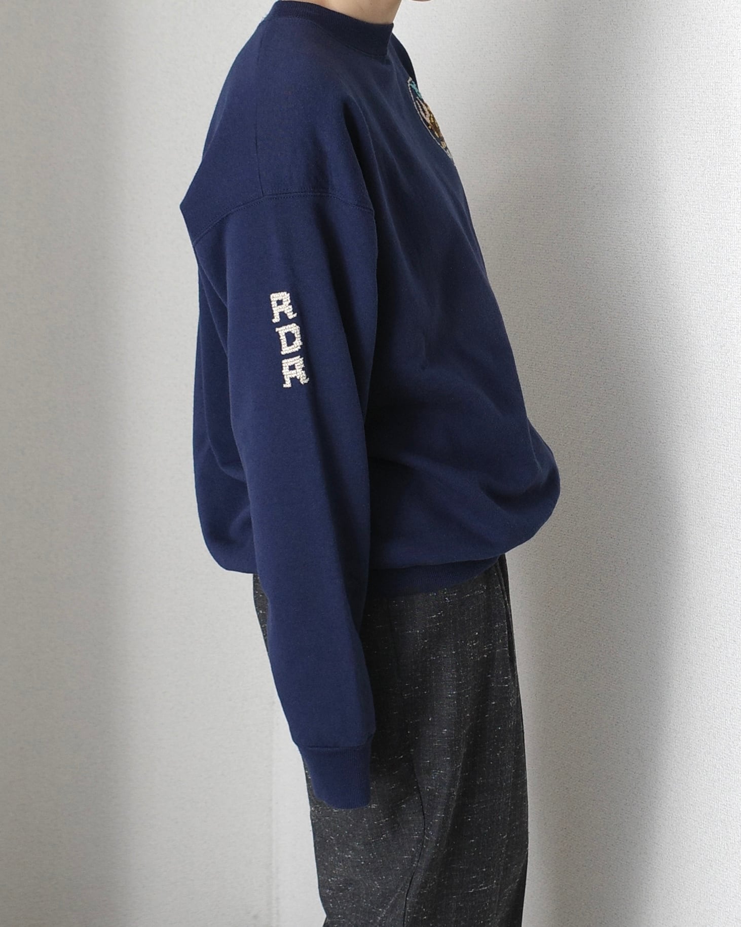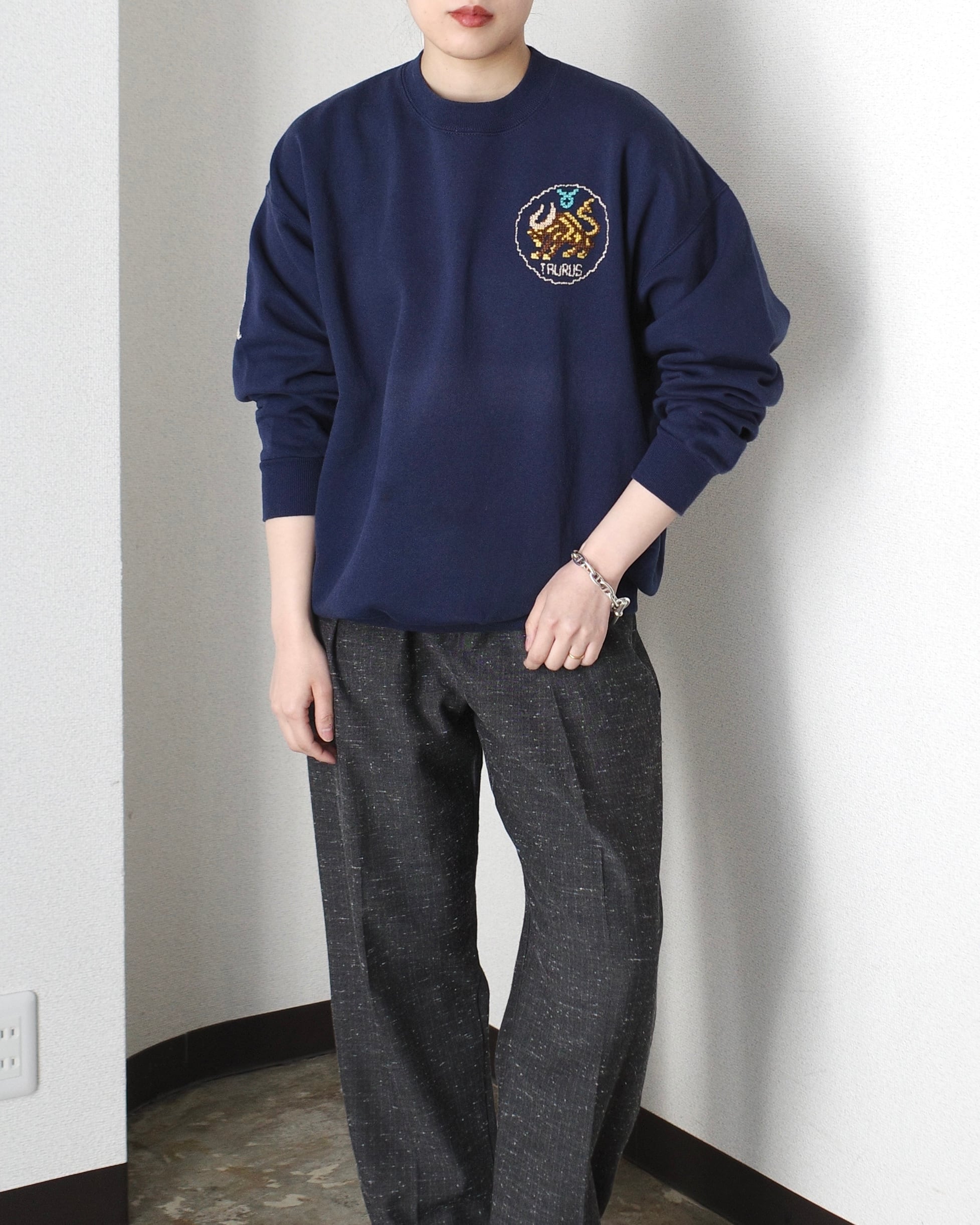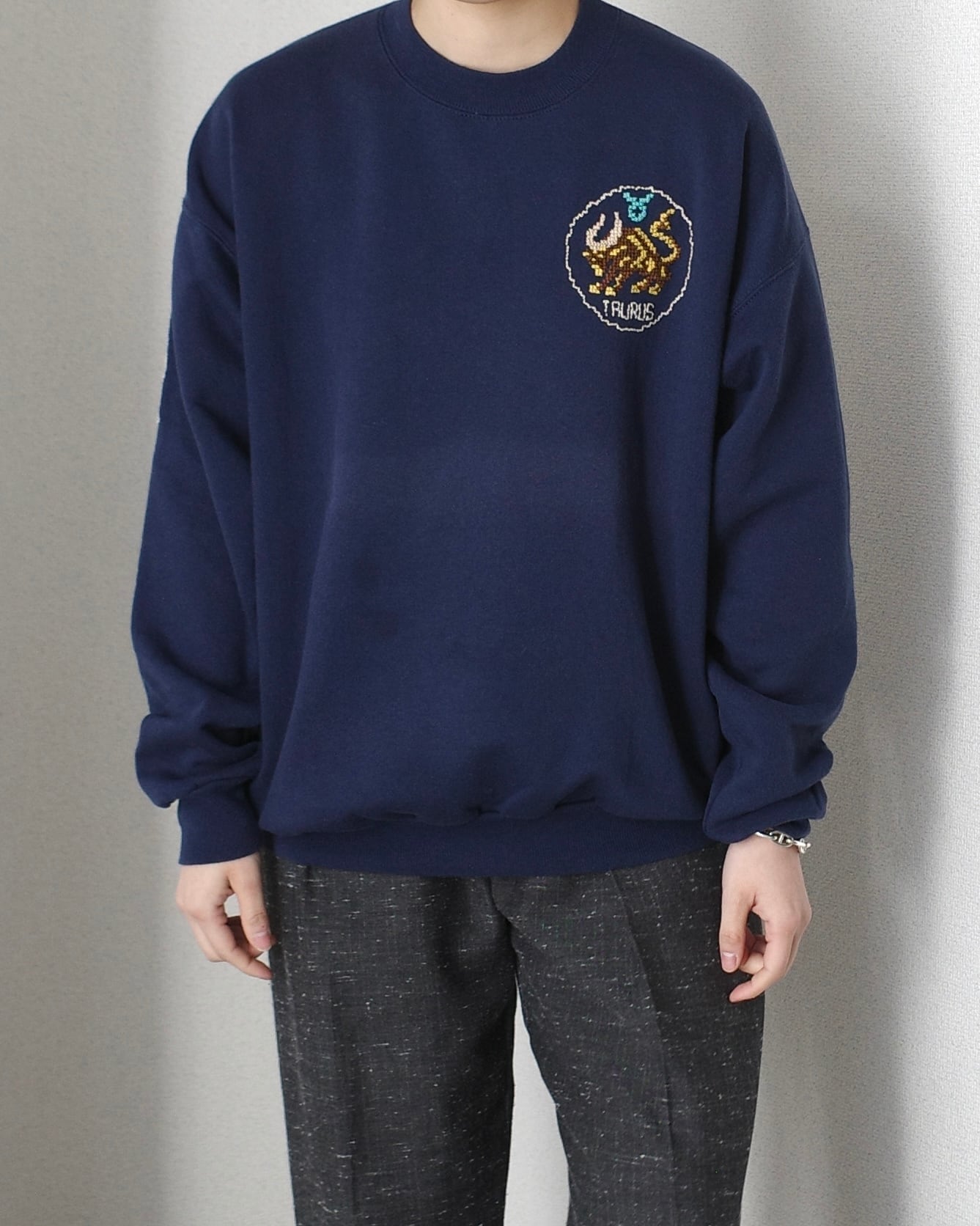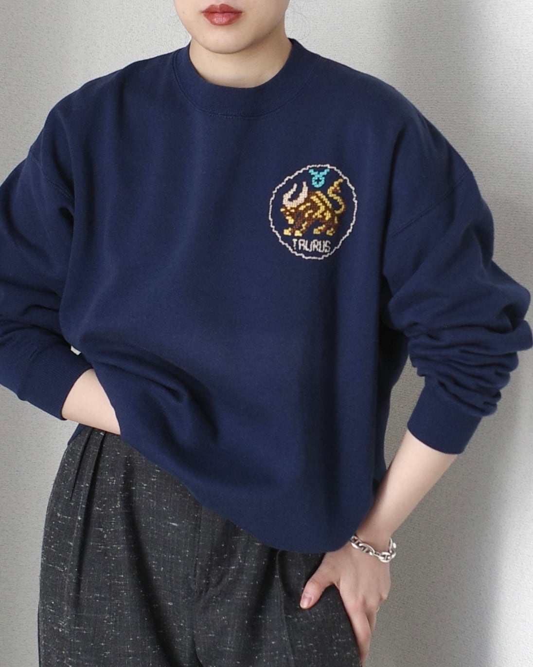 クロスステッチで刺繍されたスウェットです。