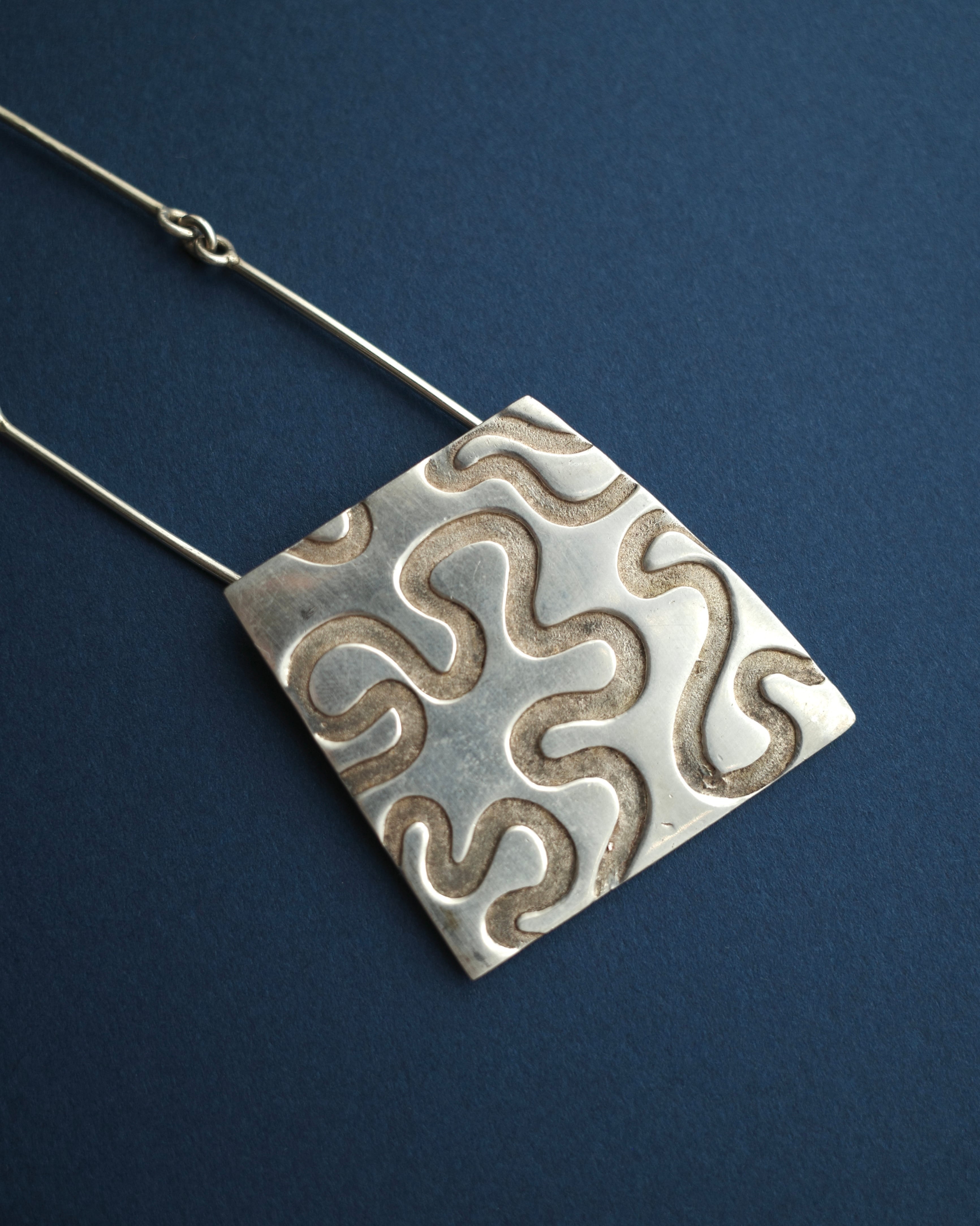 1930〜40's Euro,Danish vintage, Abstract wave carving Necklace (Silver 925)