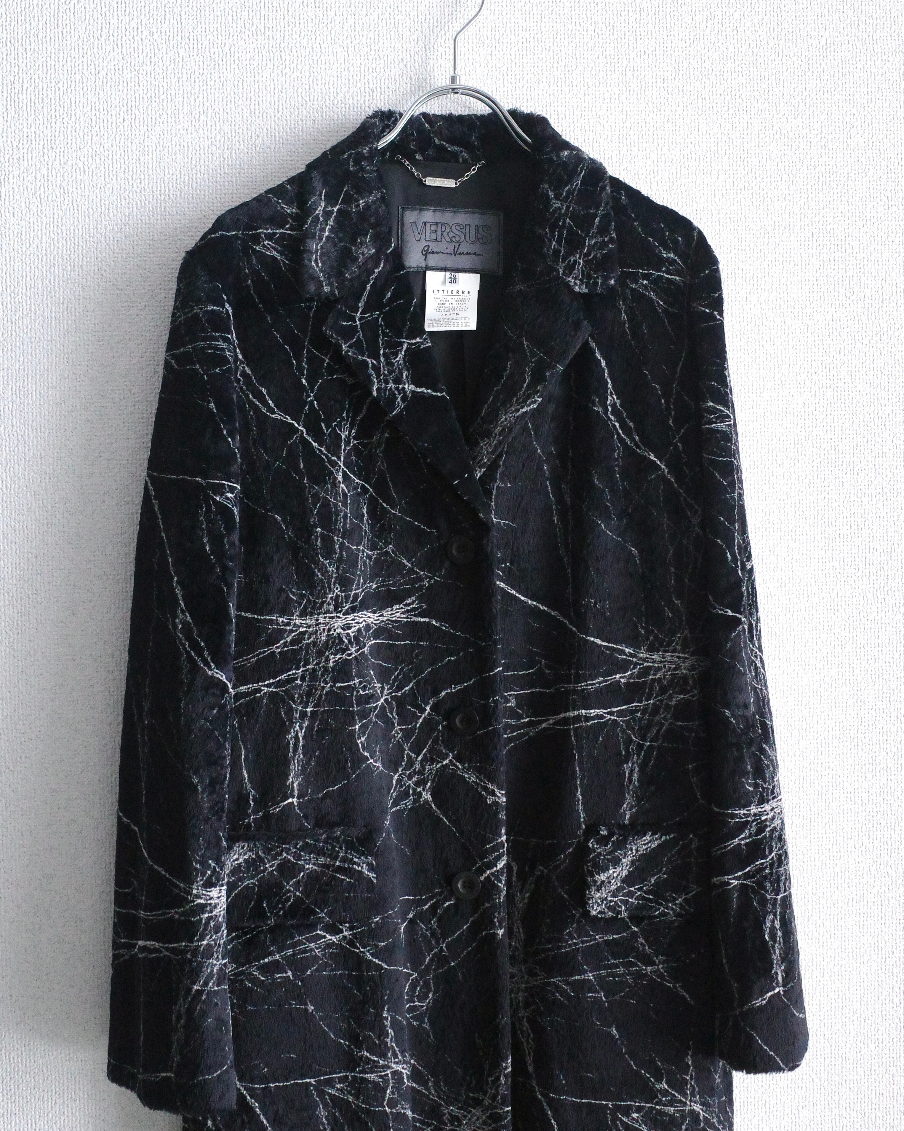 1990's vintage "VERSUS Gianni Versace", Lightning motif faux fur coat (made in Italy)