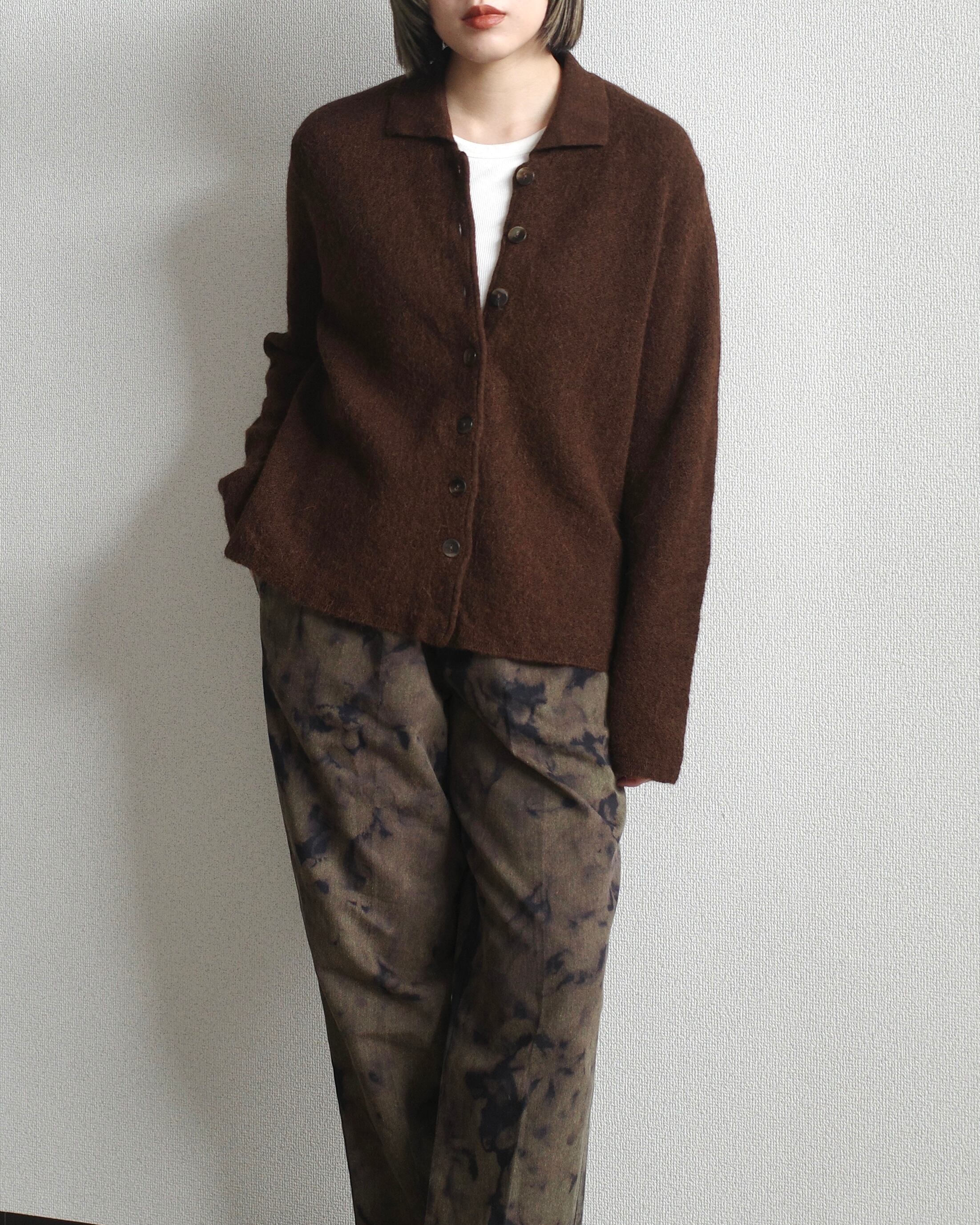 アルパカウールのニットカーディガン。